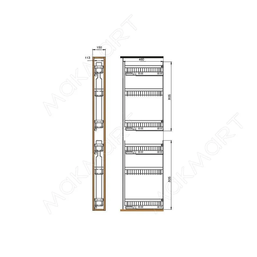 колонная состоит из двух сеток и предназначена для шкафов шириной 150 мм