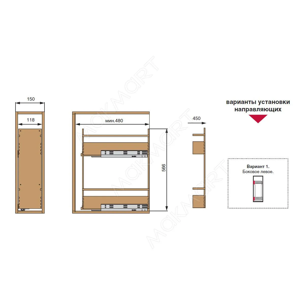 BOSCO Корзина в базу 150 выдвижная с доводчиком, отделка береза, левая