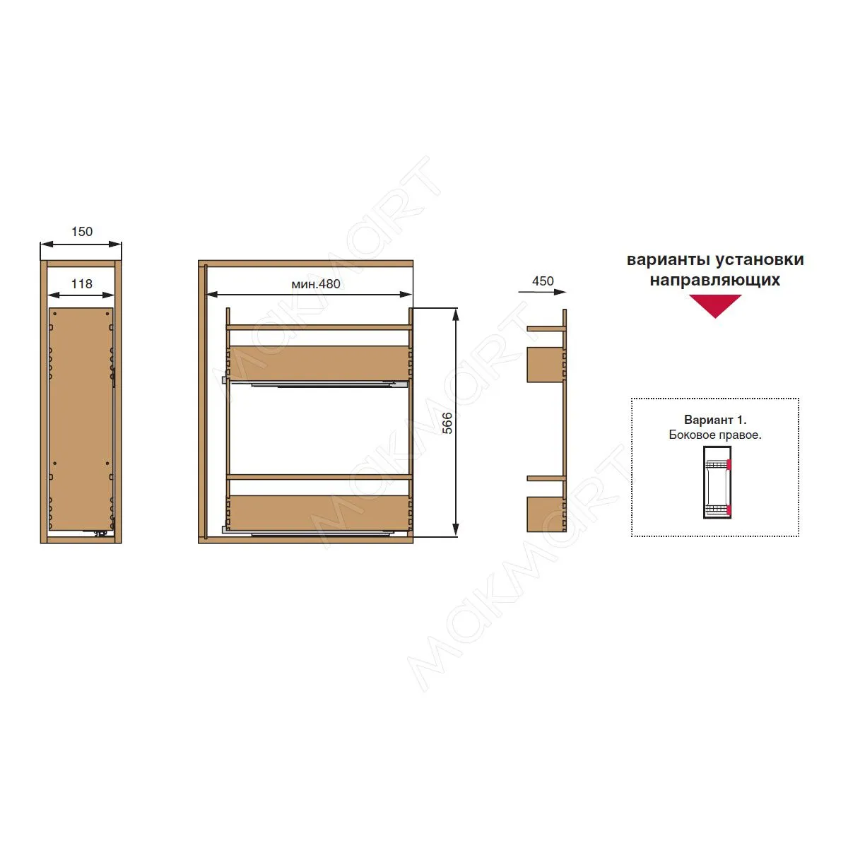 - корзины могут быть установлены в нижние базы шириной 150 мм