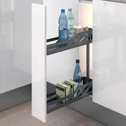 Выдвижная бутылочница серии Element 7 изготовлена из стали в трендовой отделке «орион серый», в соответствии с модными тенденциями в современном кухонном дизайне.