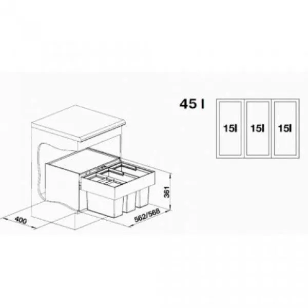 Комплектация | Система сортировки отходов с механизмом автоматического выдвижения, контейнеры |