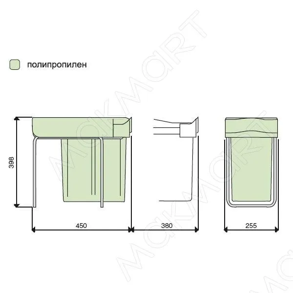 - ведро предназначено для установки в базу шириной минимум 300 мм