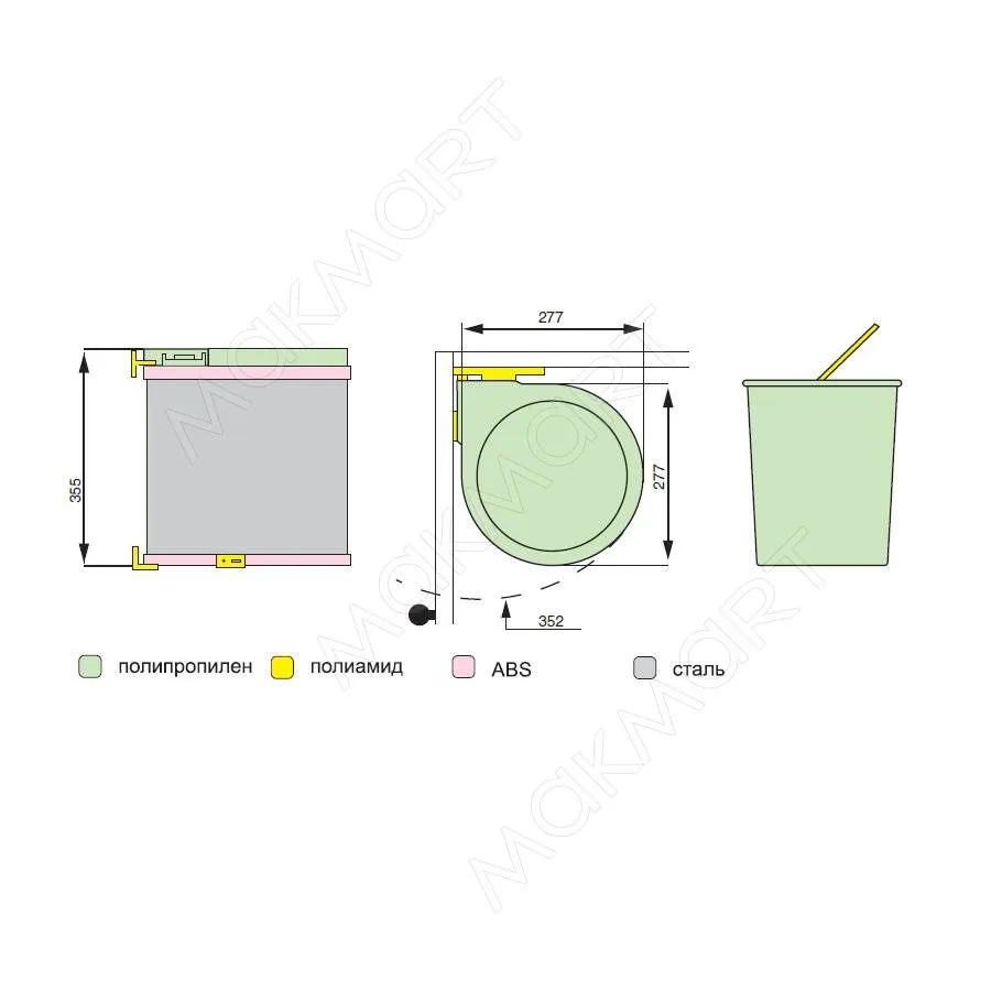 - ведро предназначено для установки в базу шириной минимум 400 мм
