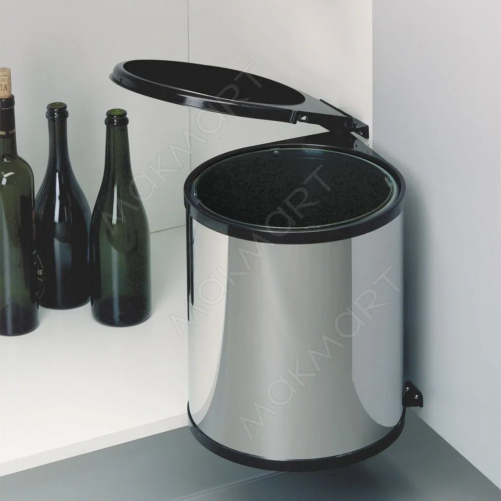 Ведро для мусора (13л), пластик чёрный + сталь нержавеющая