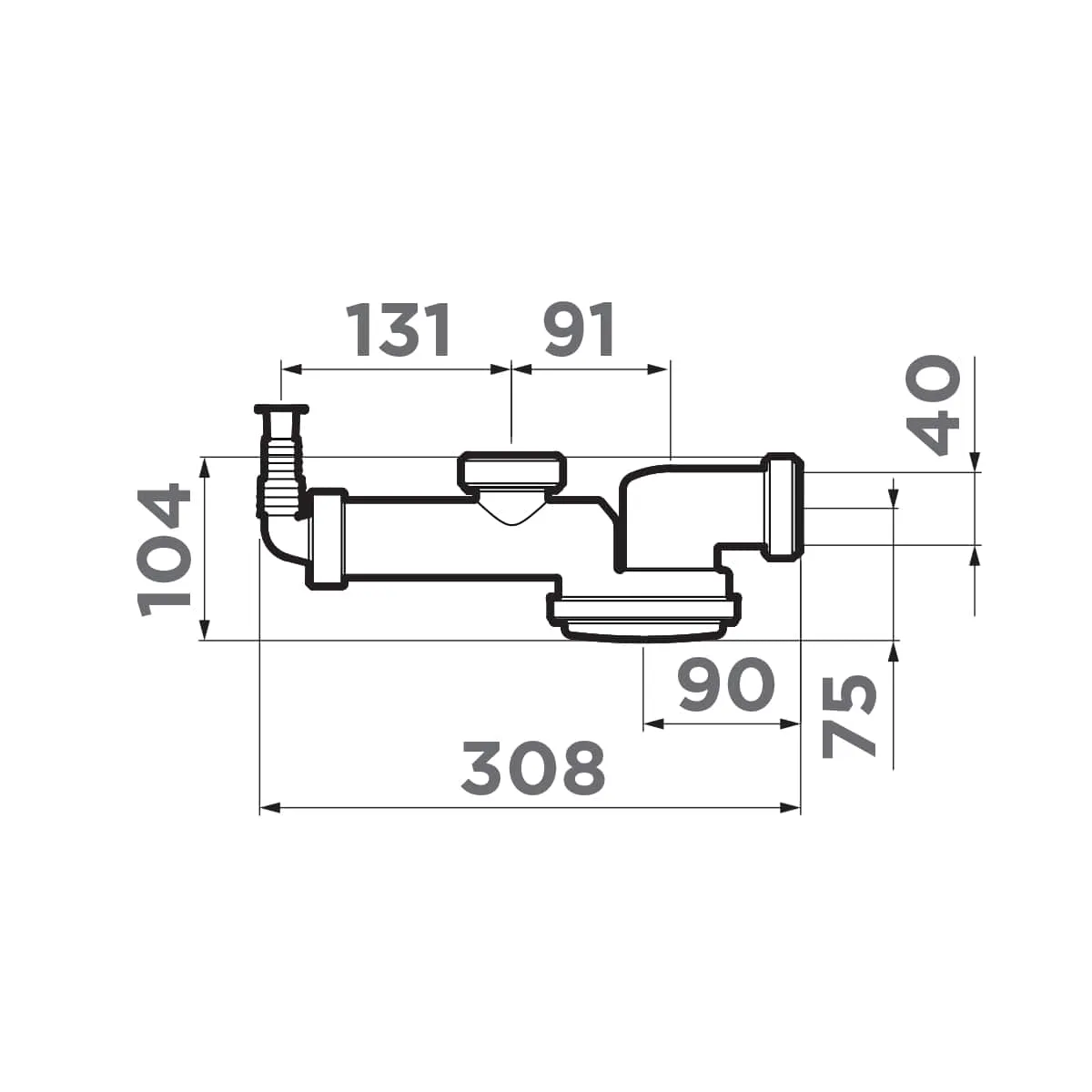 • Компактный сифон с гидрозатвором и дополнительным выходом для стиральной машины или посудомоечной машины подходит для одночашевых моек.
