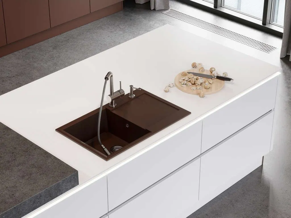 • За счет окрашивания каждой частицы гранитного материала при помощи специальной технологии, первоначальный цвет мойки гарантировано сохраняется в течение всего срока службы;