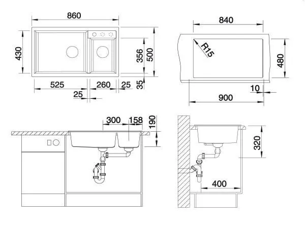 Мойка Blanco Metra 9 (чаша слева) серый беж