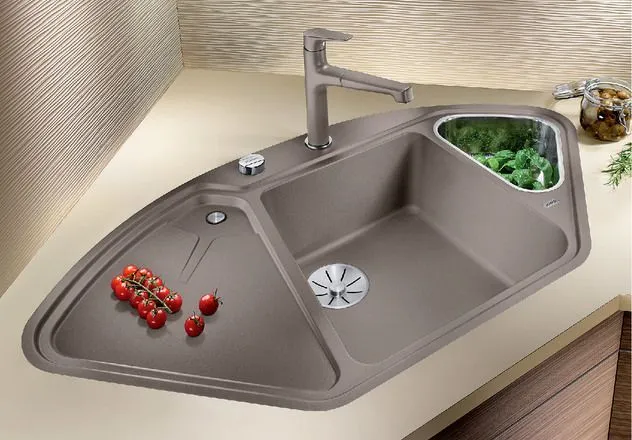 Антрацитовый цвет мойки прекрасно сочетается с любым интерьером и придает кухне современный вид.