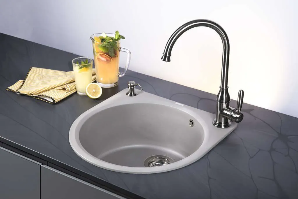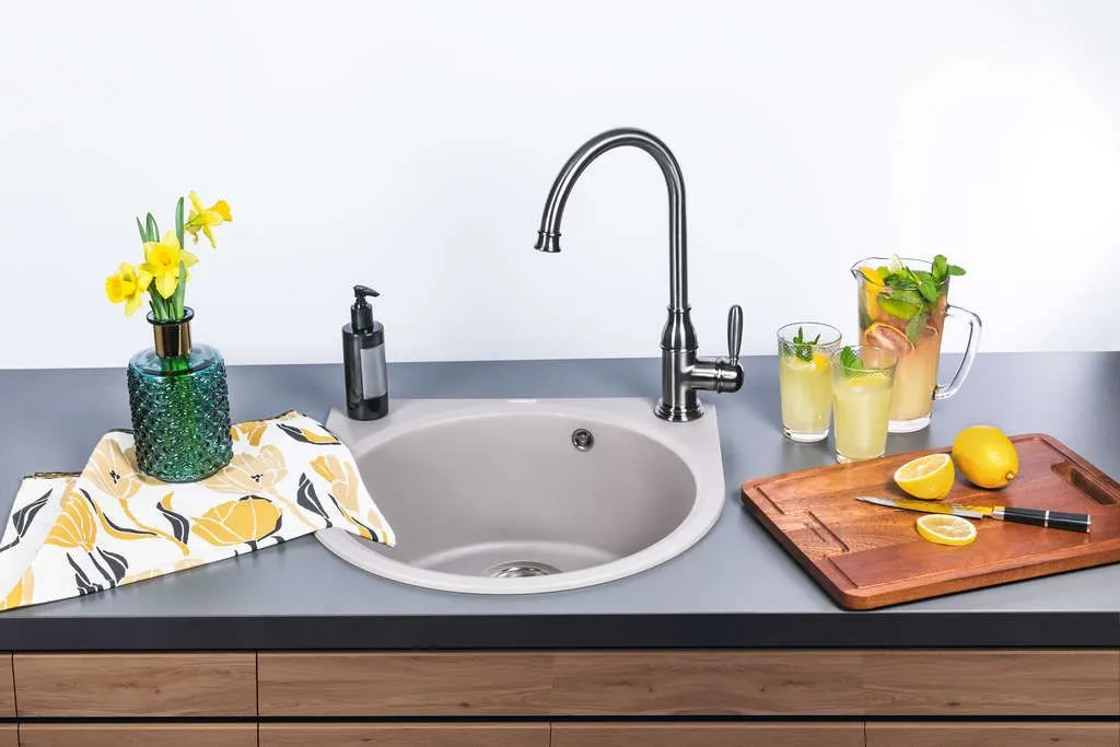 • Помимо гранита, в состав материала входит молотый кварц мельчайших размеров, которому характерны непревзойденная прочность и устойчивость к природным и химическим воздействиям. Свойства данного компонента вместе с долговечностью гранита обеспечивают мойке прочность и делают её устойчивой к любым механическим повреждениям: деформациям, сколам;