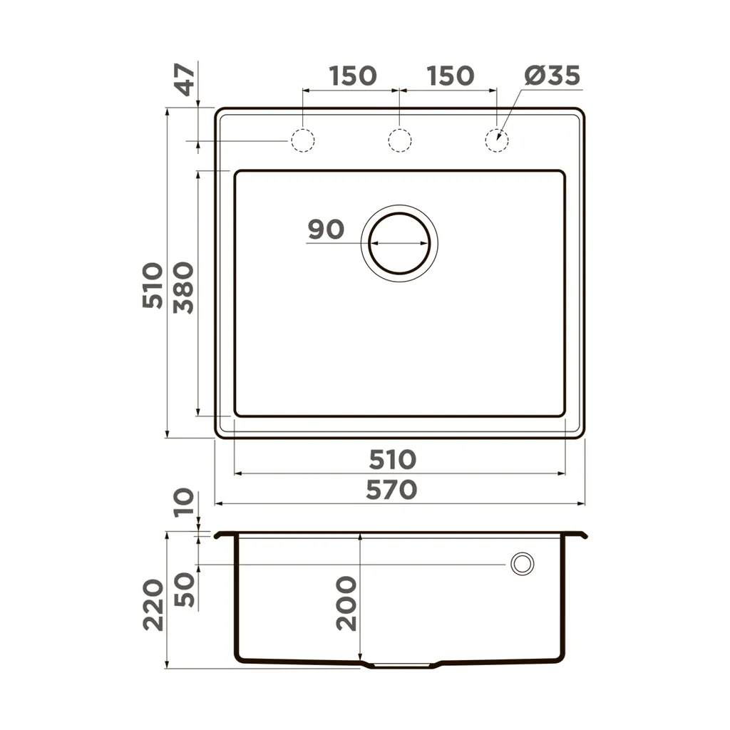 • Материал выдерживает высокие температуры до 280°С (но не стоит ставить на поверхность мойки горячие сковородки и кастрюли, т.к их температура может достигать 500°С).