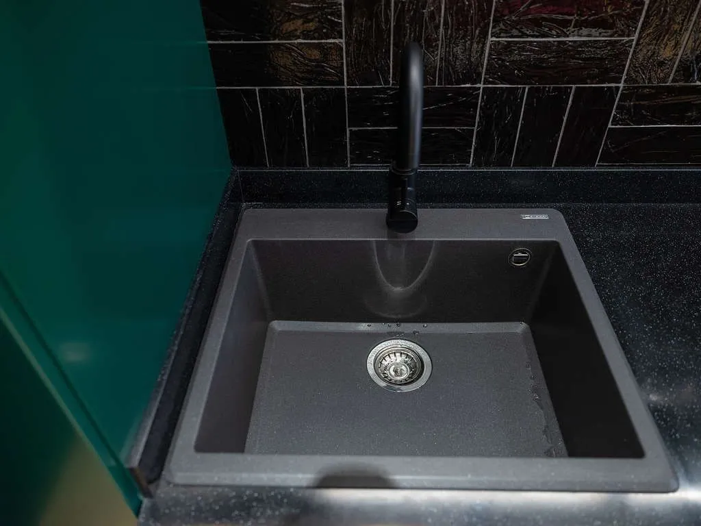 • Материал выдерживает высокие температуры до 280°С (но не стоит ставить на поверхность мойки горячие сковородки и кастрюли, т.к их температура может достигать 500°С).