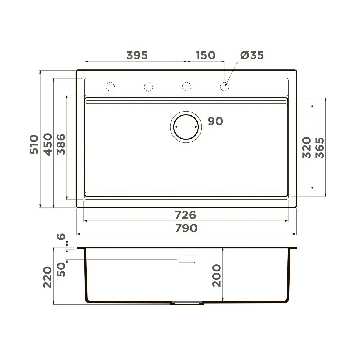 • Материал выдерживает высокие температуры до 280°С (но не стоит ставить на поверхность мойки горячие сковородки и кастрюли, т.к их температура может достигать 500°С);