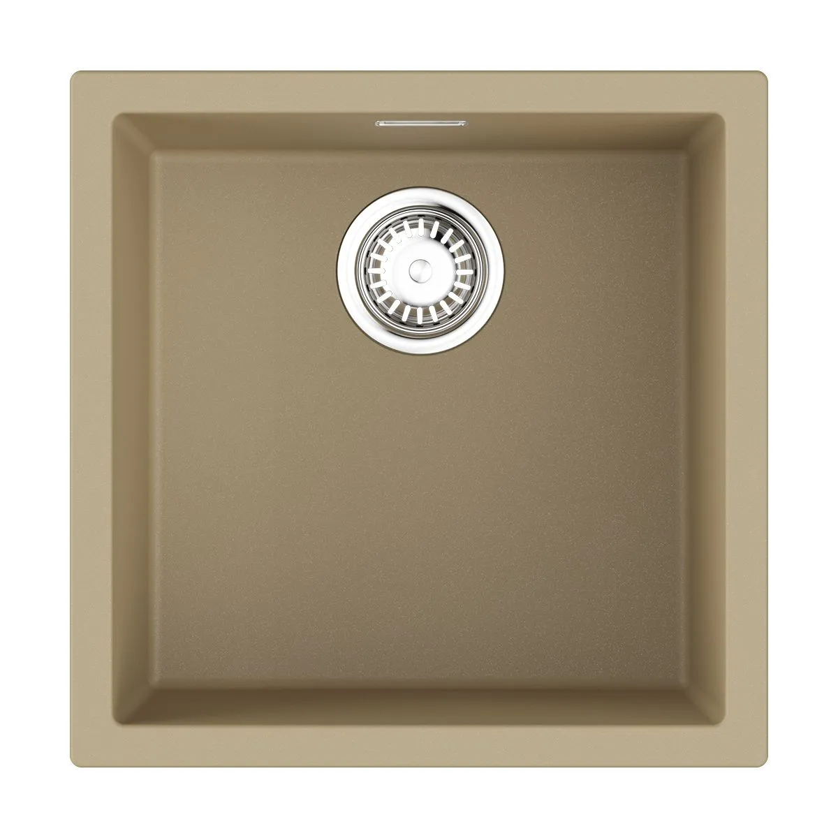 Материал изготовления - Tetogranit. Толщина 10 мм. Ширина монтажной базы 45/50 см. Крепления, донный клапан (автоматический донный клапан приобретается отдельно), сифон, слив, перелив, гарантийный талон. • Технология производства «Tetogranit» заключается в том, что частицы гранита, кварцевый песок и акриловую смолу объединяют в пресс-форме и обжигают при высокой температуре. Далее, для обеззараживания поверхности добавляют ионы серебра и волокна теторона (Tetoron), благодаря которым, на всём протяжении эксплуатации моек не происходит развитие бактерий, плесени и грибка. Также, при изготовлении моек из «Tetogranit» применяется специальный способ окрашивания частиц гранита: на их поверхность при температуре выше 700°С наносится пигмент, который за счет высокотемпературного нанесения проникает во внутренние структуры камня;