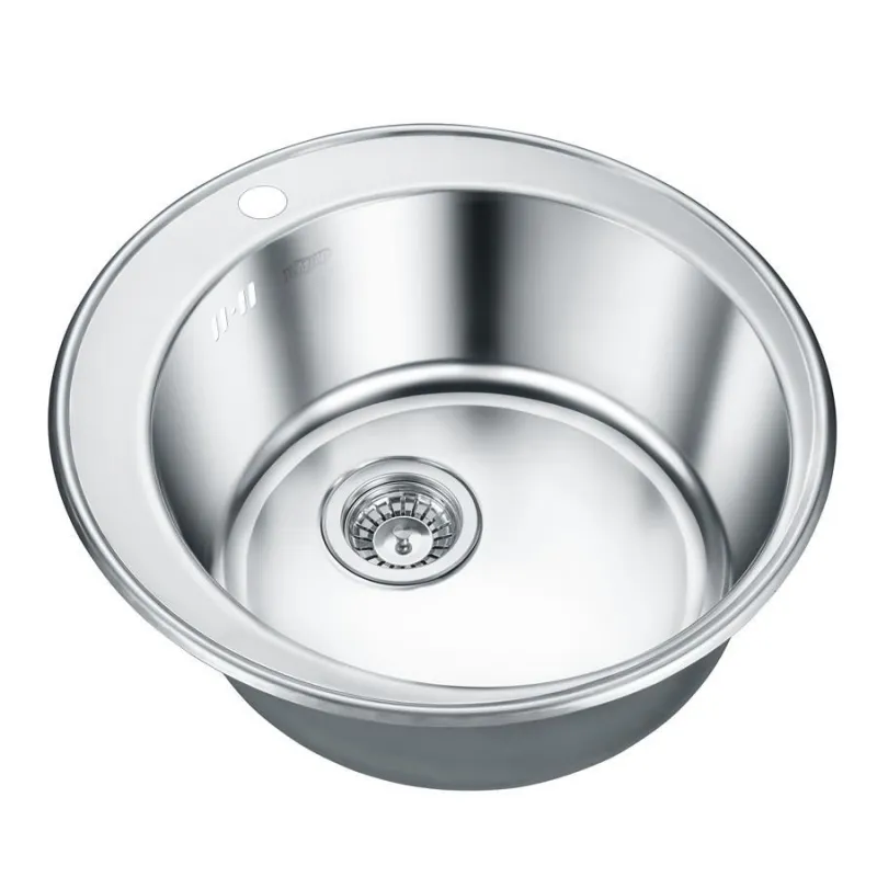Круглая мойка эконом класса из нержавеющей стали с глянцевой поверхностью. Гарантия на мойку - 5 лет.