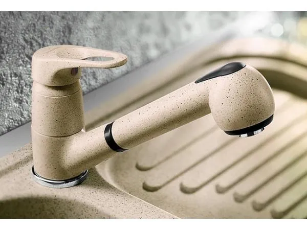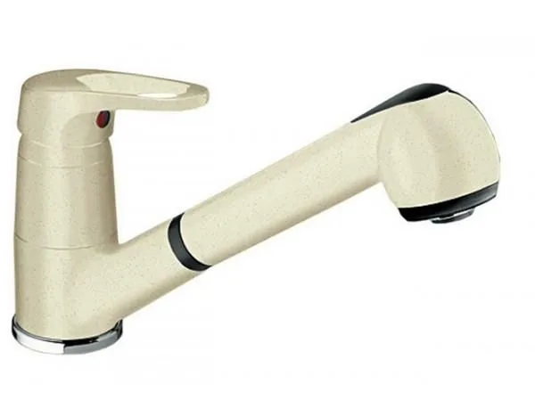 Смеситель с покрытием из искусственного камня (silgranit) цвета "жасмин" с выдвижным изливом.