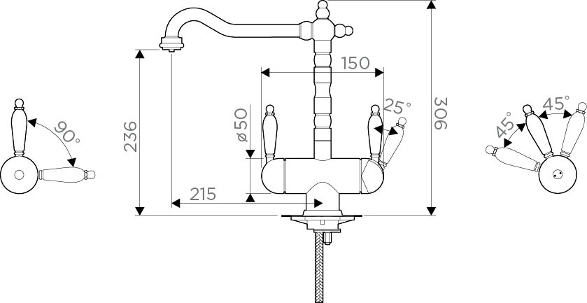 - Классический дизайн и удобство использования благодаря высокому изливу.