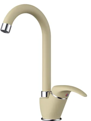 - Смеситель выполнен в современном стиле и снабжен высоким поворотным изливом.