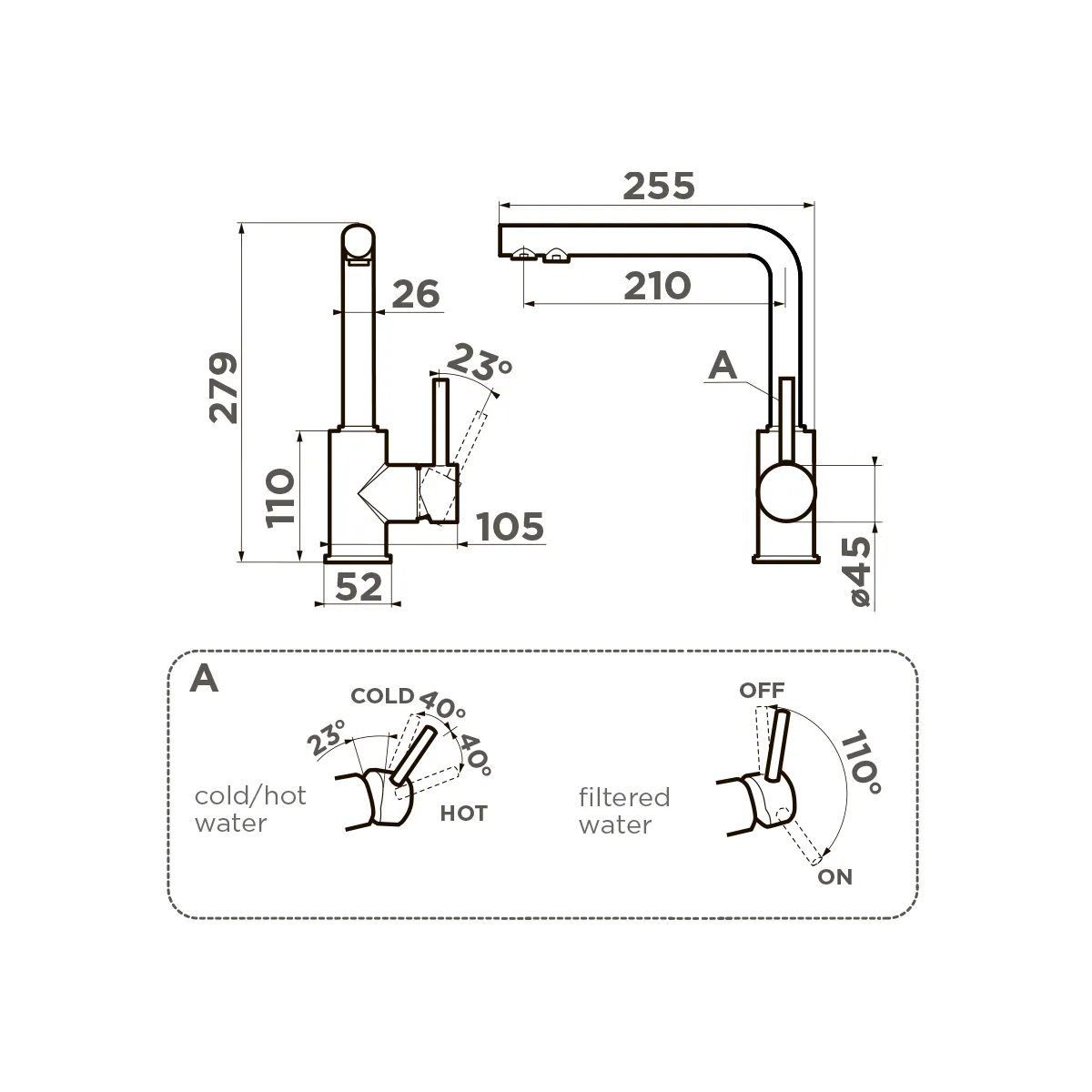 • Новая удобная технология системы ручки "2 в 1 Multi" - позволяет переключить с водопроводной на фильтрованную воду в одно касание;