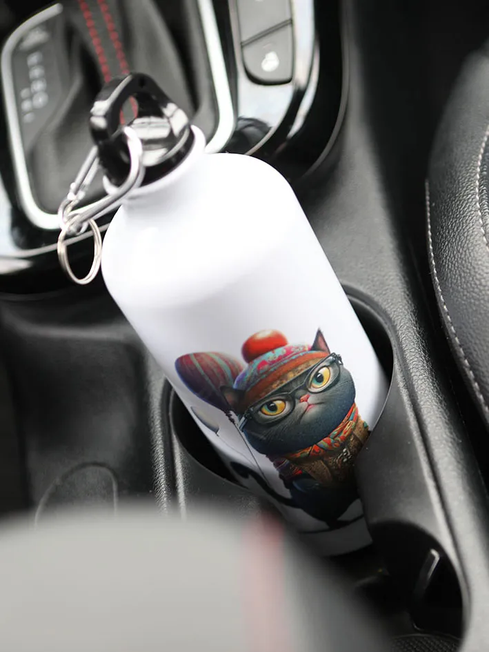 Фляжка алюминевая для воды Котик в шапке, 600мл.