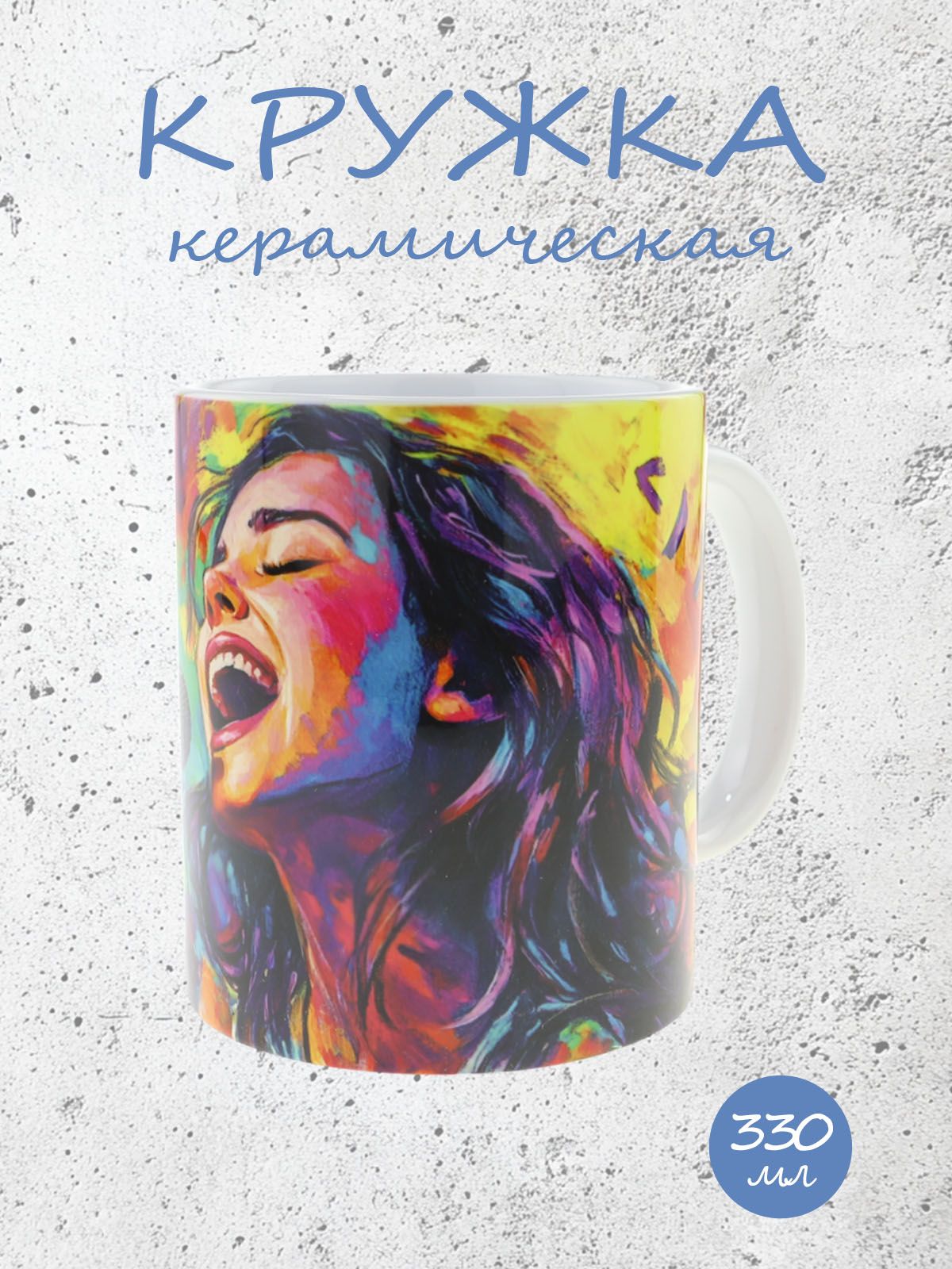 Керамическая кружка с ярким изображением вокалистки, №3 идеальная для любителей музыки и чая, объем 330мл