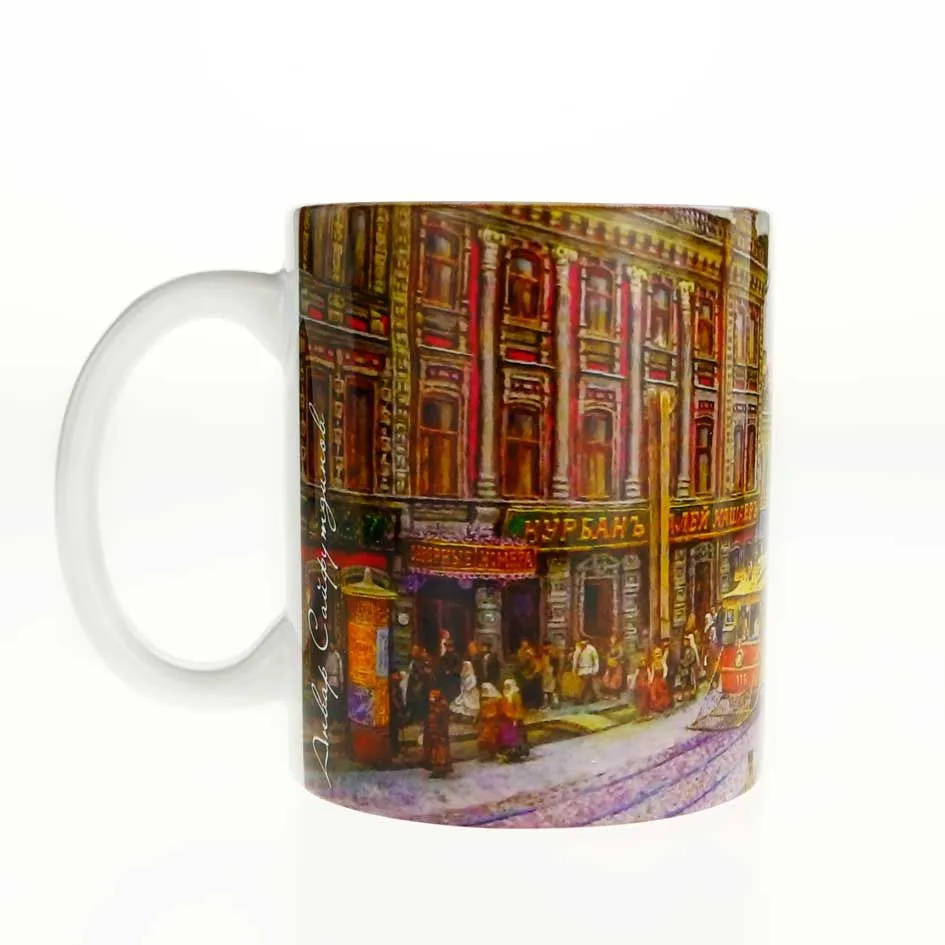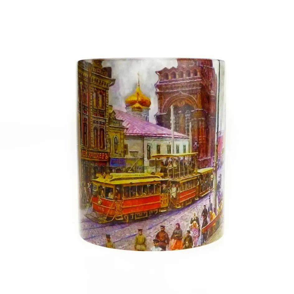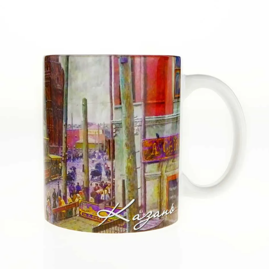 Кружка с изображением архитектуры Казани "Улица Баумана. Назад в прошлое" керамическая 330мл. с историческим принтом