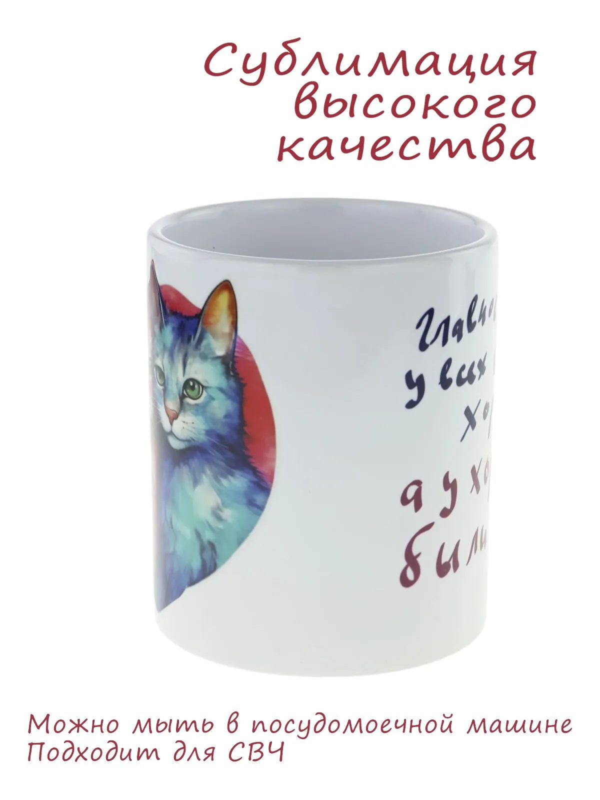 Кружка керамическая Влюбленные котики с надписью "Главное, чтобы у всех все было хорошо...", 330мл. в подарок любимой девушке