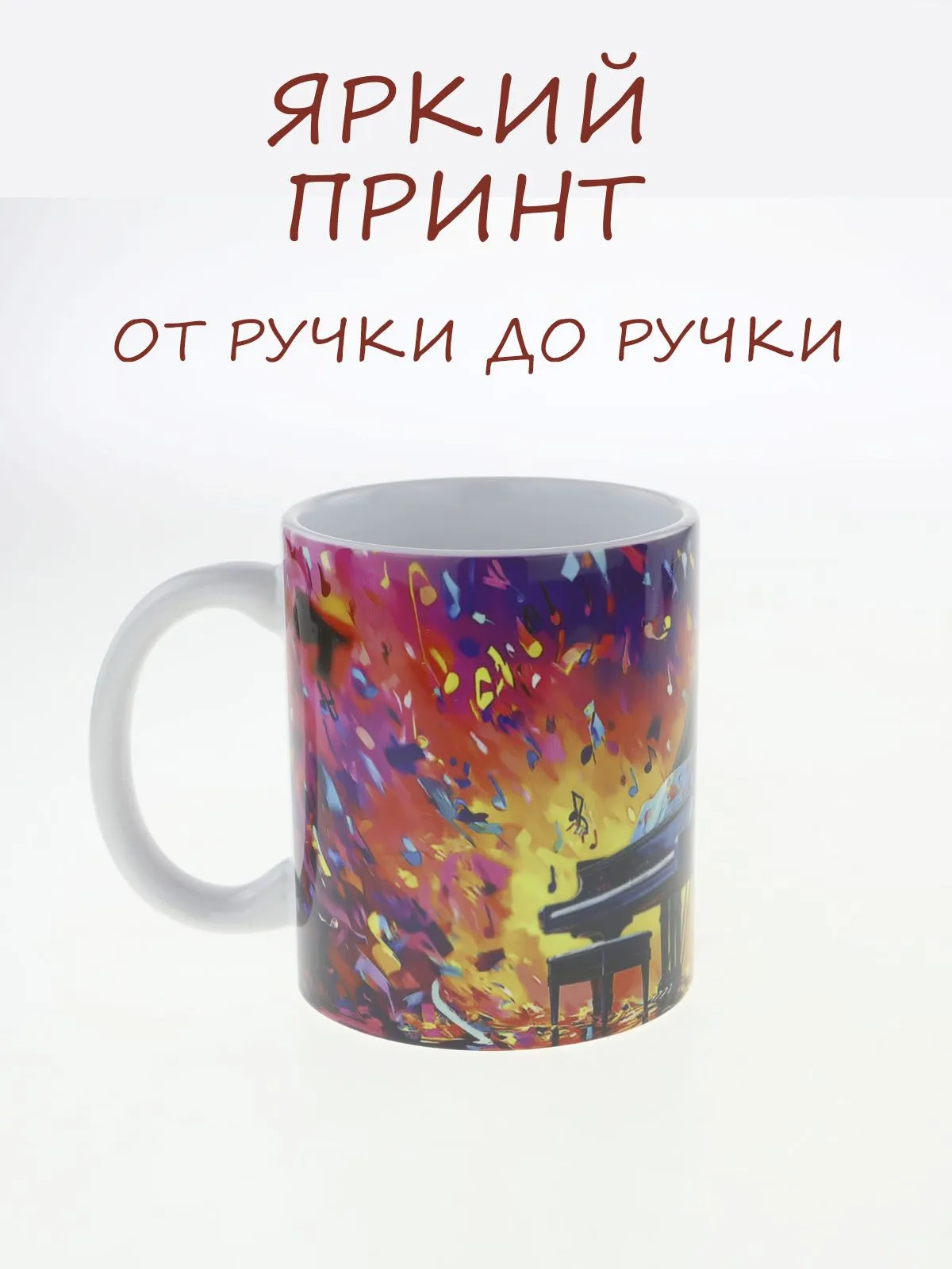 Кружка керамическая с ярким музыкальным дизайном "Рояль" №2, объем 330мл.