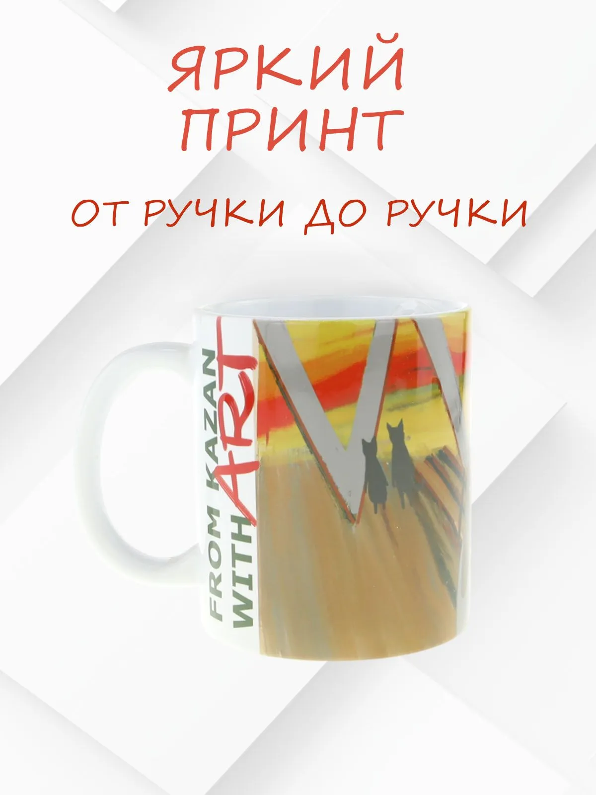 Керамическая кружка "Из Казани с искусством ...по мотивам знаменитой картины Эдварда Мунка "Крик", объем 330мл.