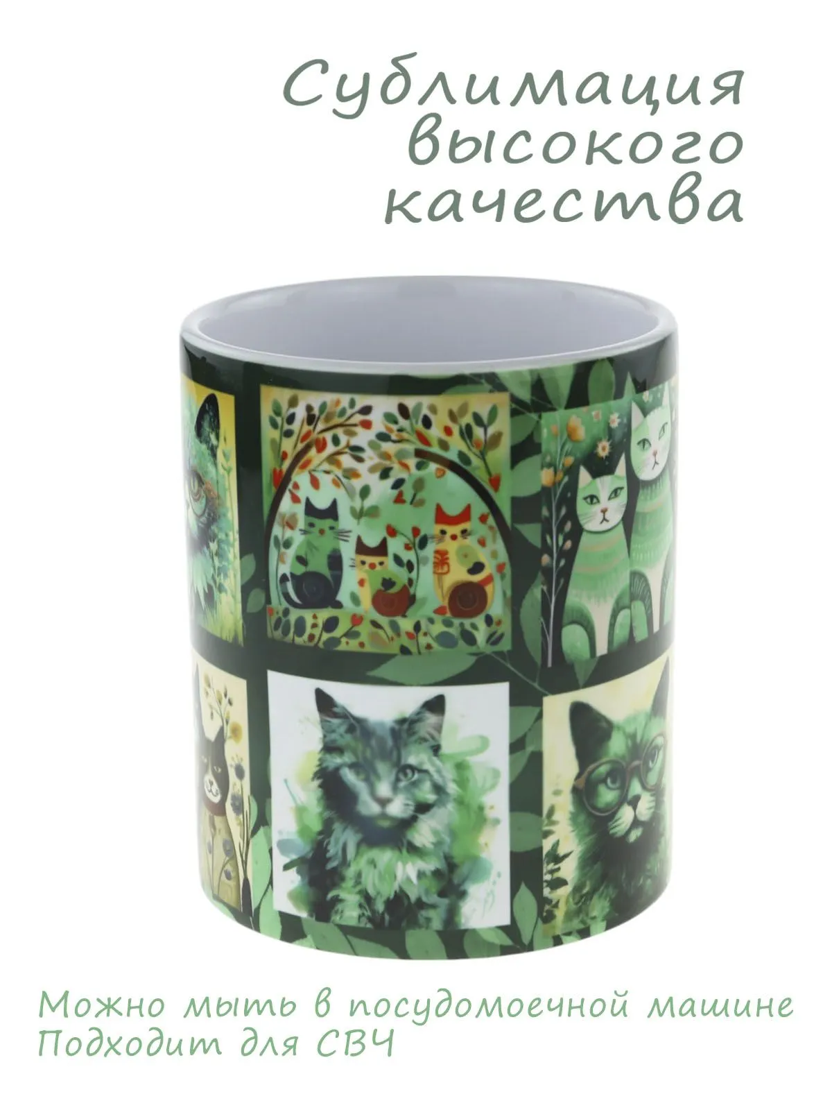Керамическая кружка "Из Казани с искусством... коллаж котиков ", объем 330мл.