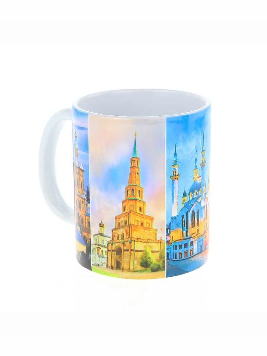 Керамическая кружка "Коллаж Казани" на основе картин казанских художников