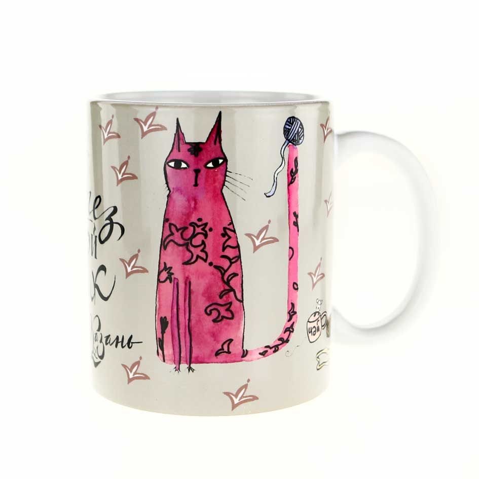 Керамическая кружка с котиком "Эйдегез чэй эчик" (пер. Идем пить чай)