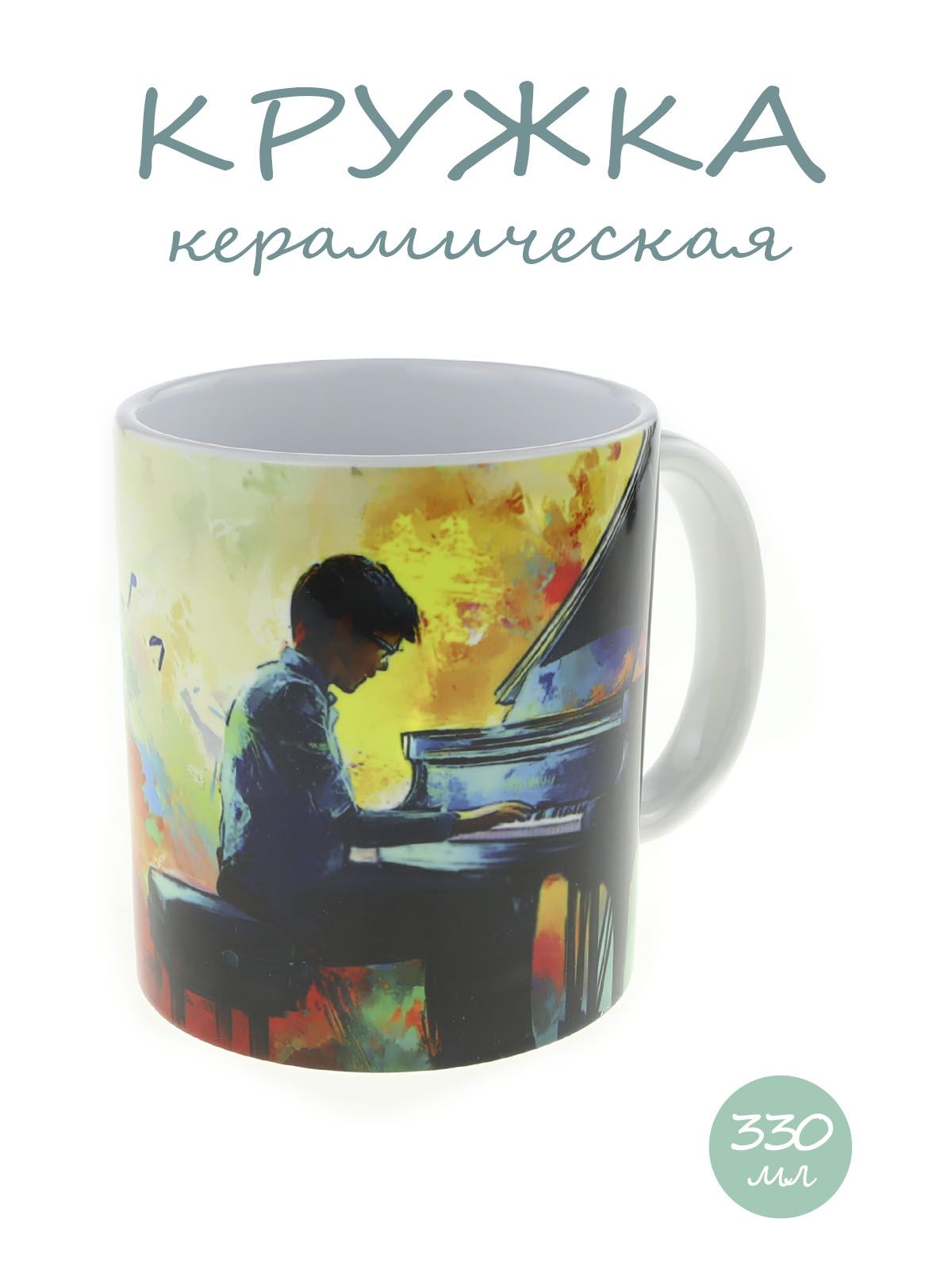 Керамическая кружка с изображением девушки, играющей на рояле, объем 330мл.
