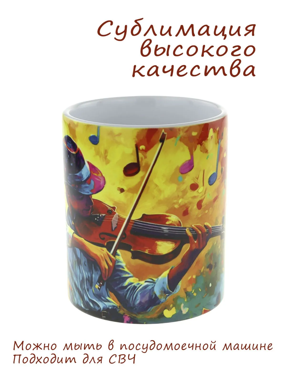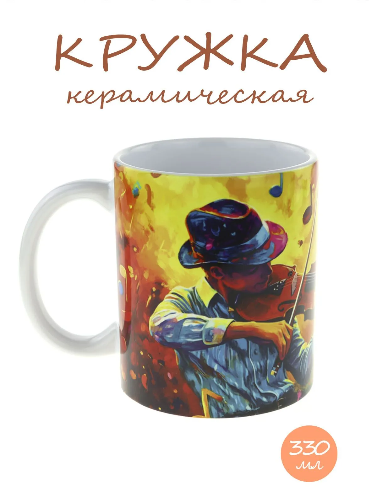 Керамическая кружка с музыкальным дизайном "Скрипач", объем 330мл.