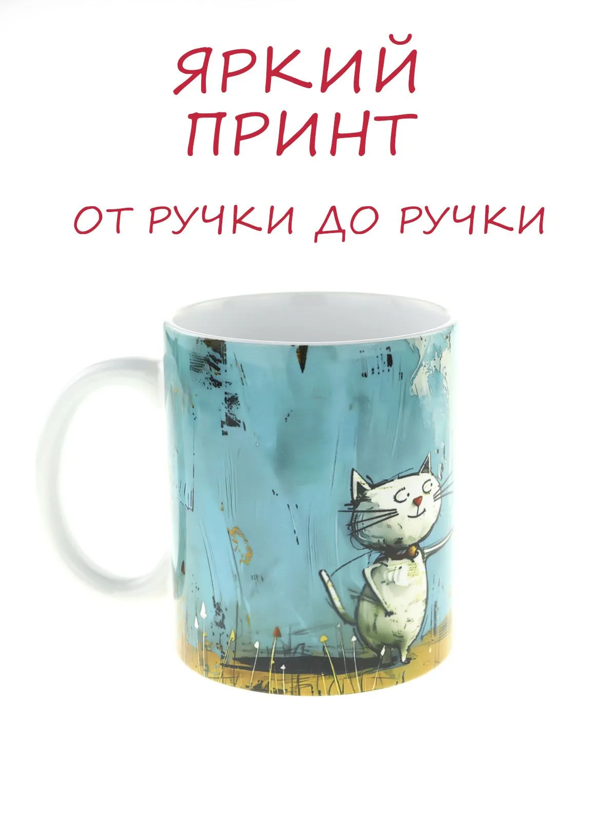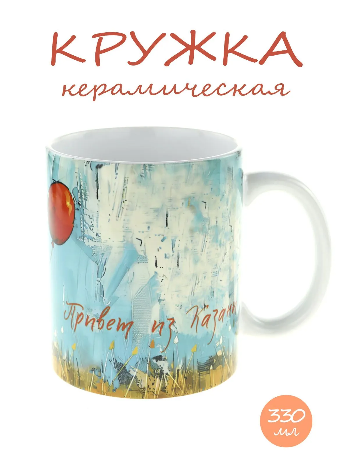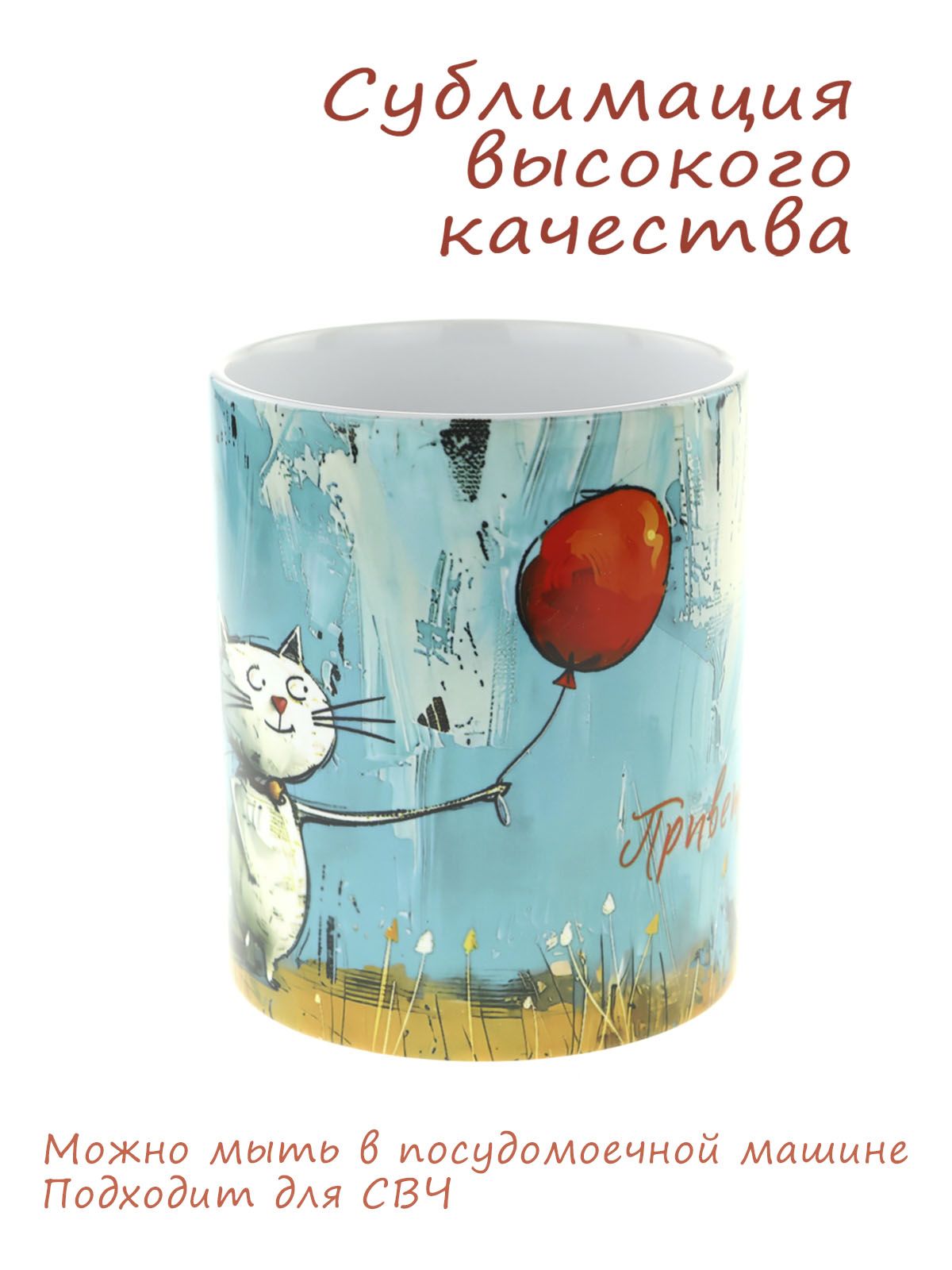 Керамическая кружка с изображением Милый котик с красным шариком, объем 330мл.