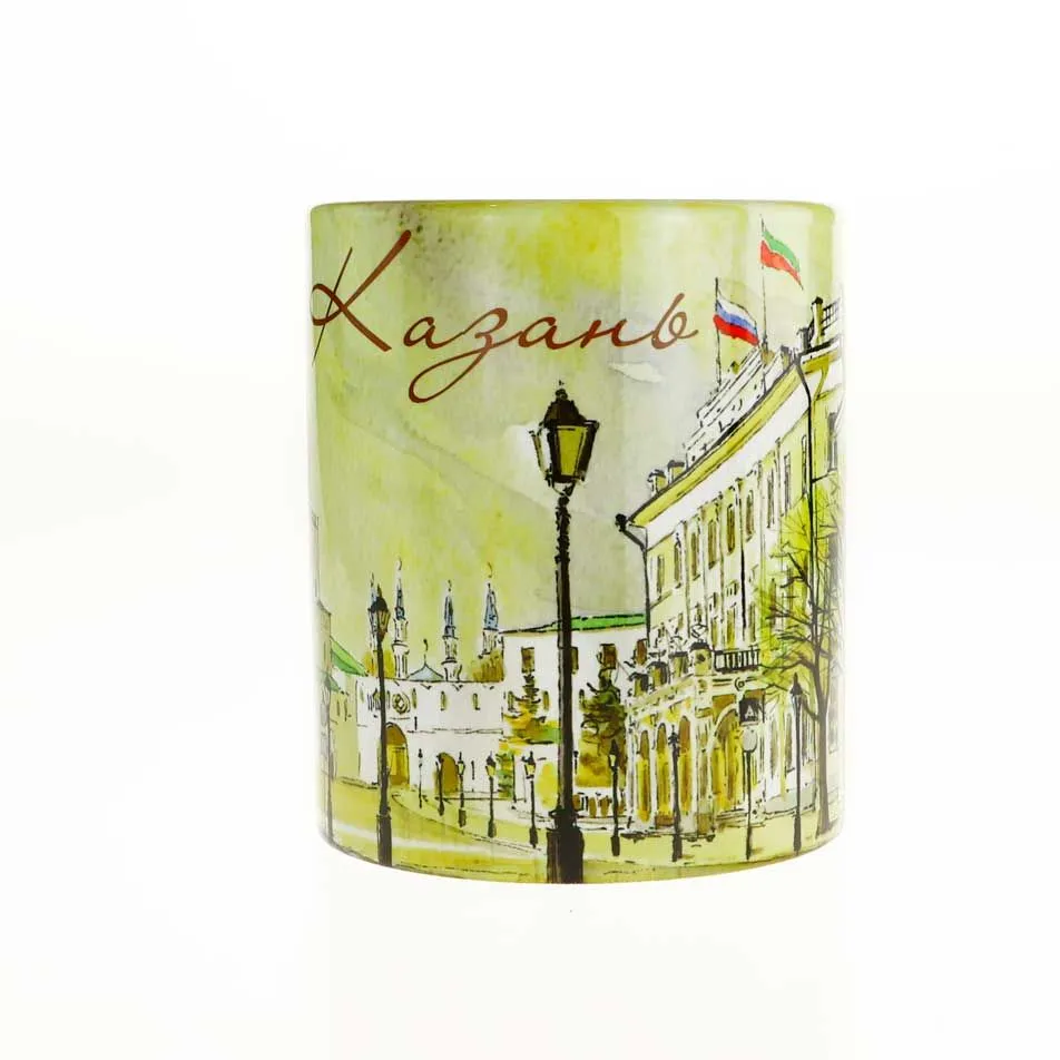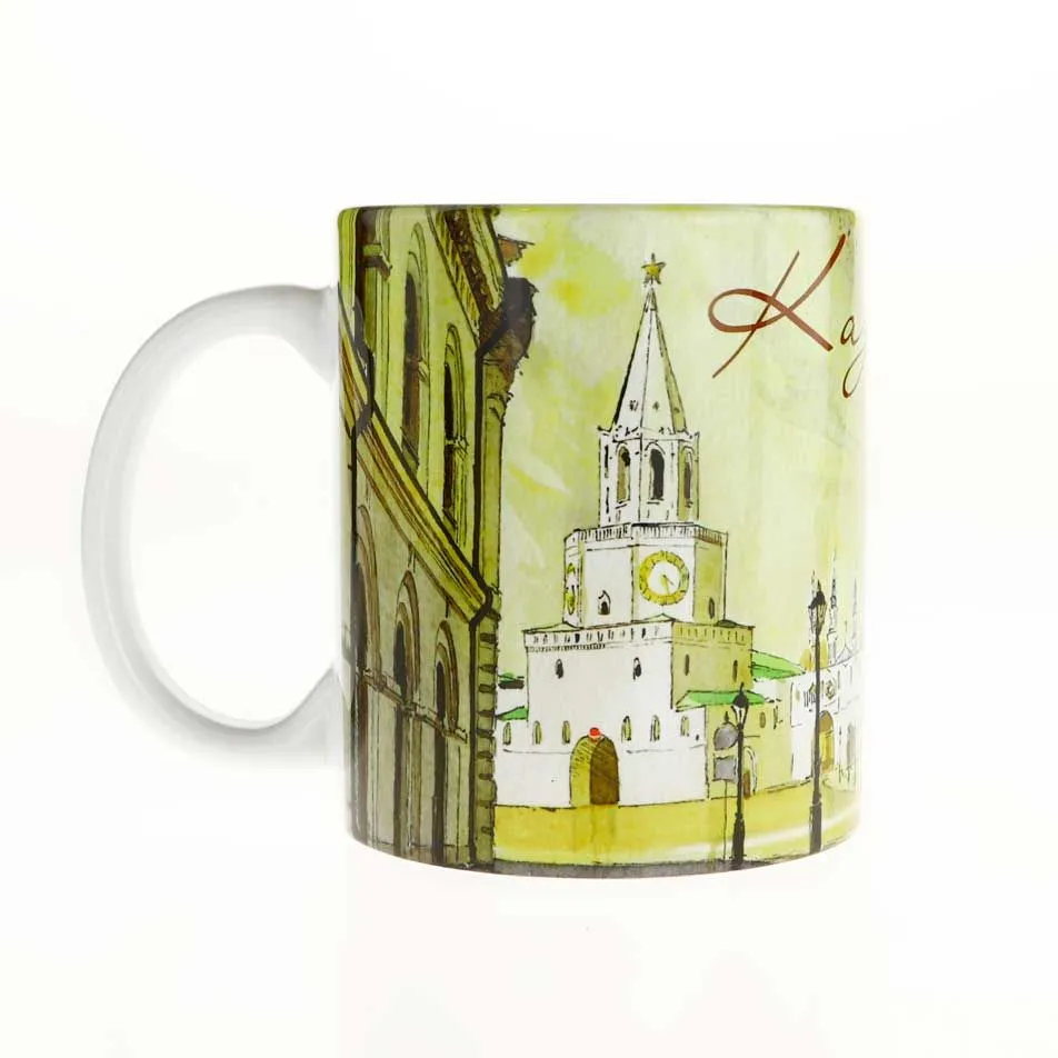 Керамическая кружка с рисунком Спасская башня, Казань от художника Хамидуллина, объем 330мл.