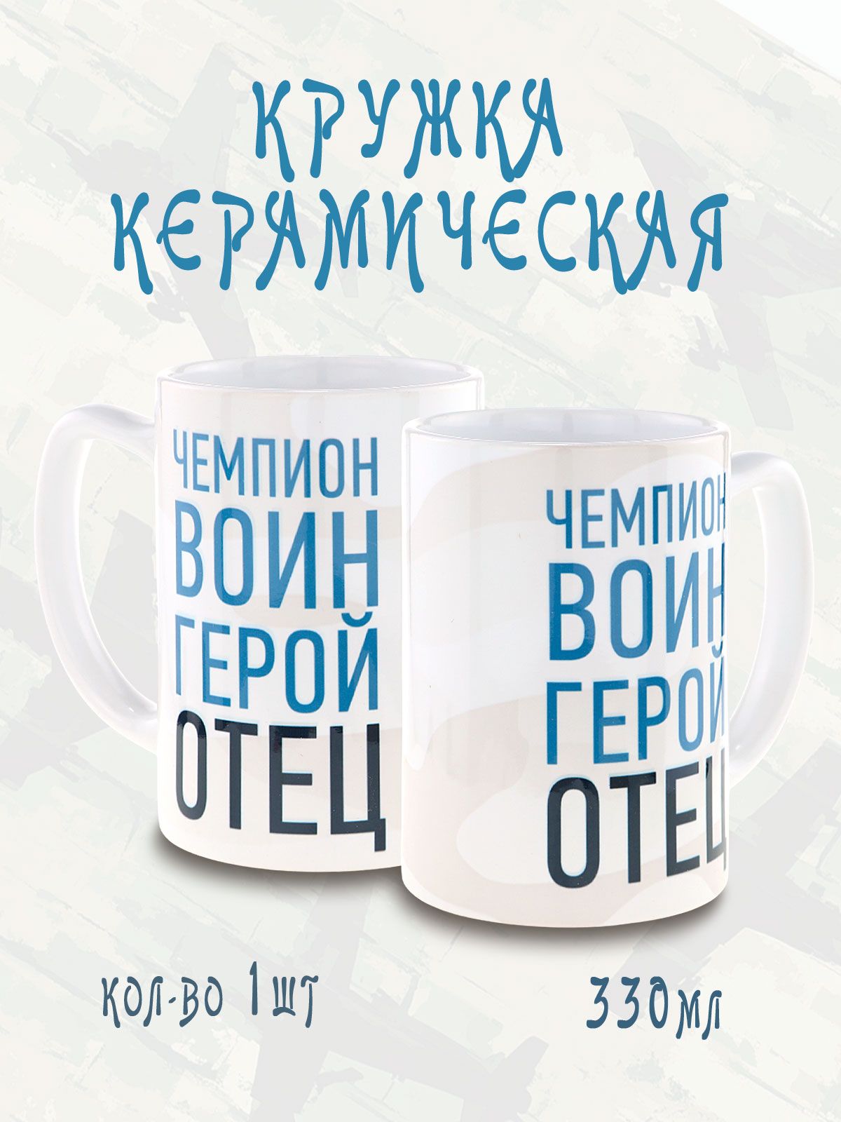 Керамическая кружка "Чемпион, воин, отец, герой" , объем 420мл., подарок отцу, мужу