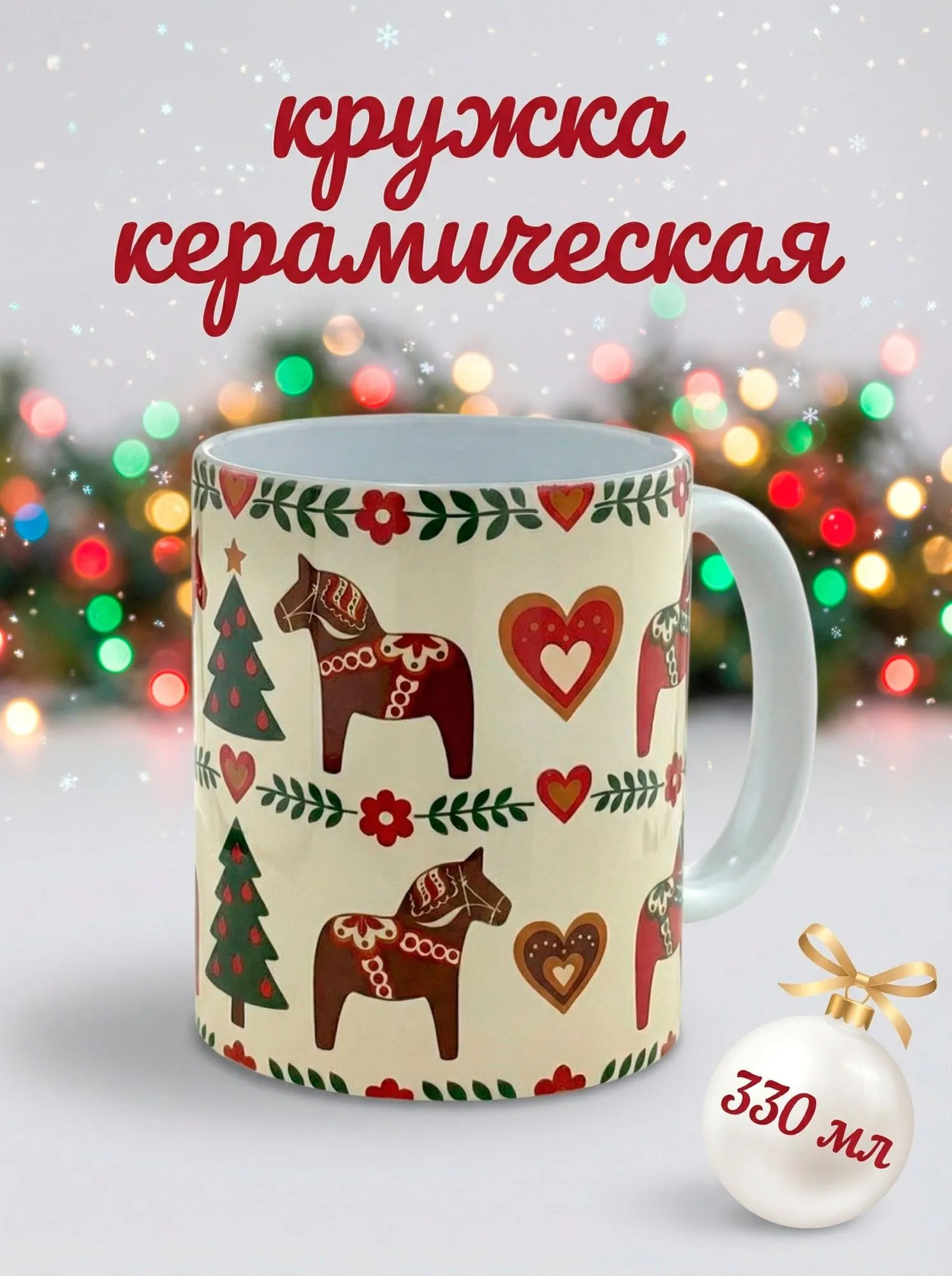 Кружка керамическая "Пряничная Лошадка". Сканди стиль. Объем 330мл.
