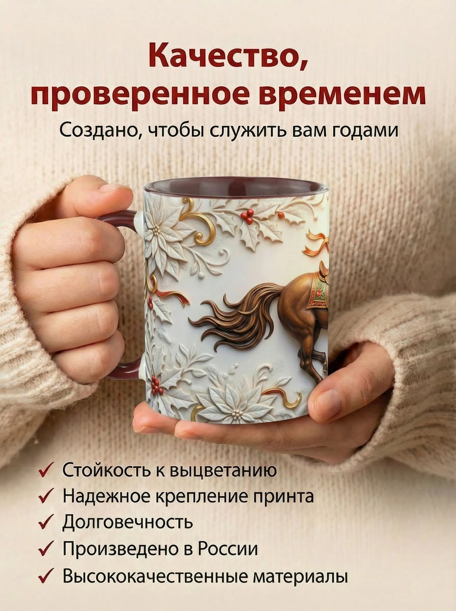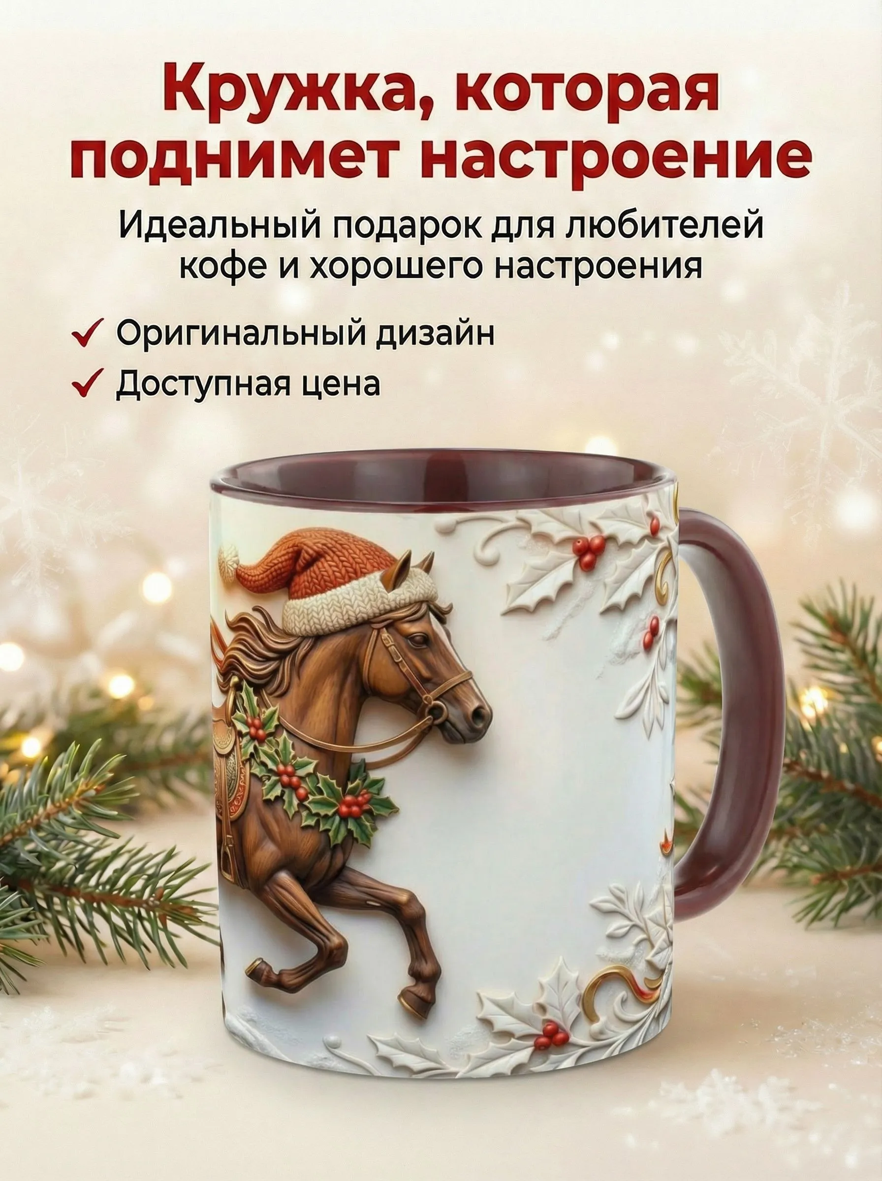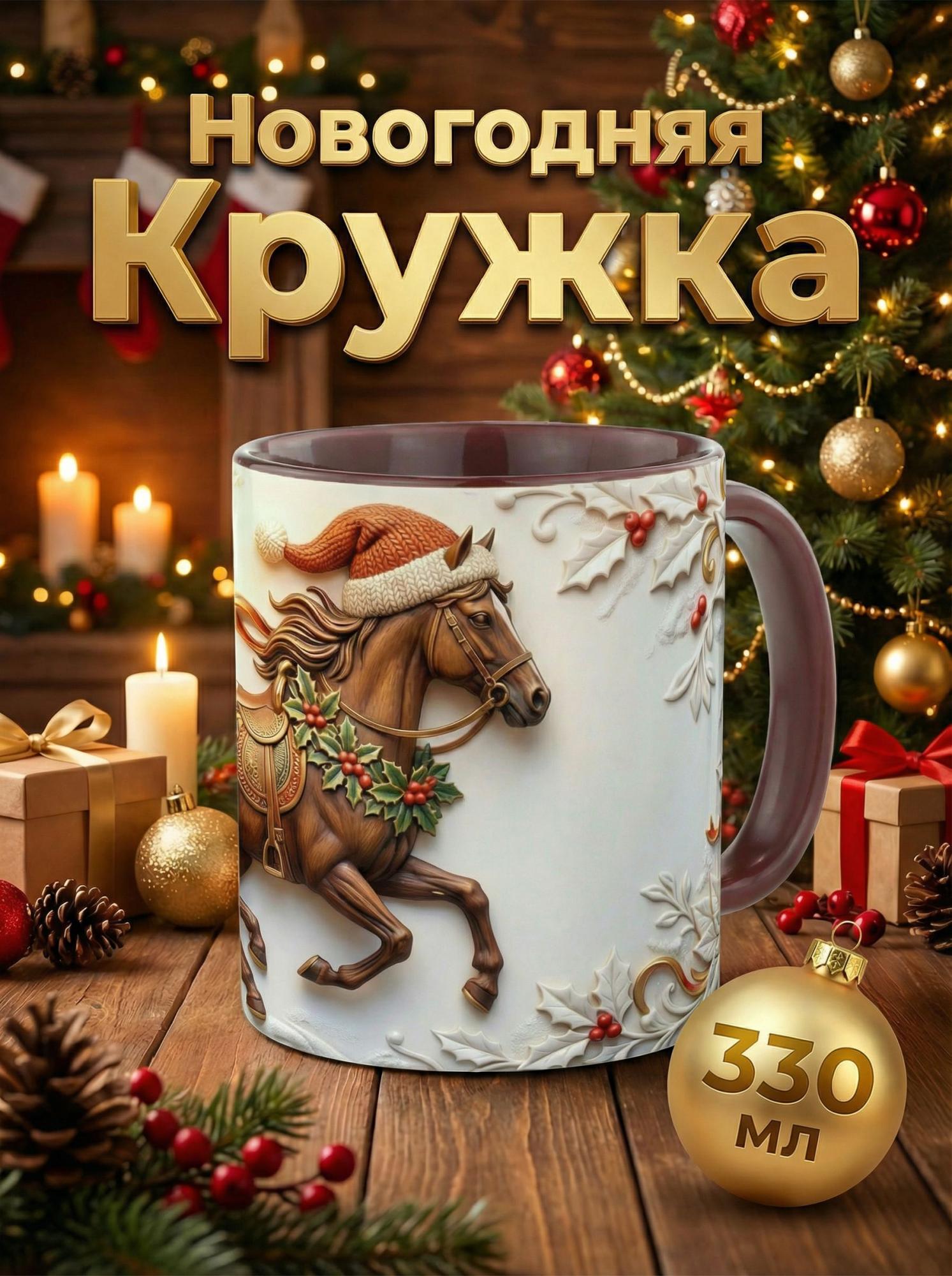 Кружка керамическая "Гнедой Конь 2026" 330мл. - Гармония силы и уюта в новом году!