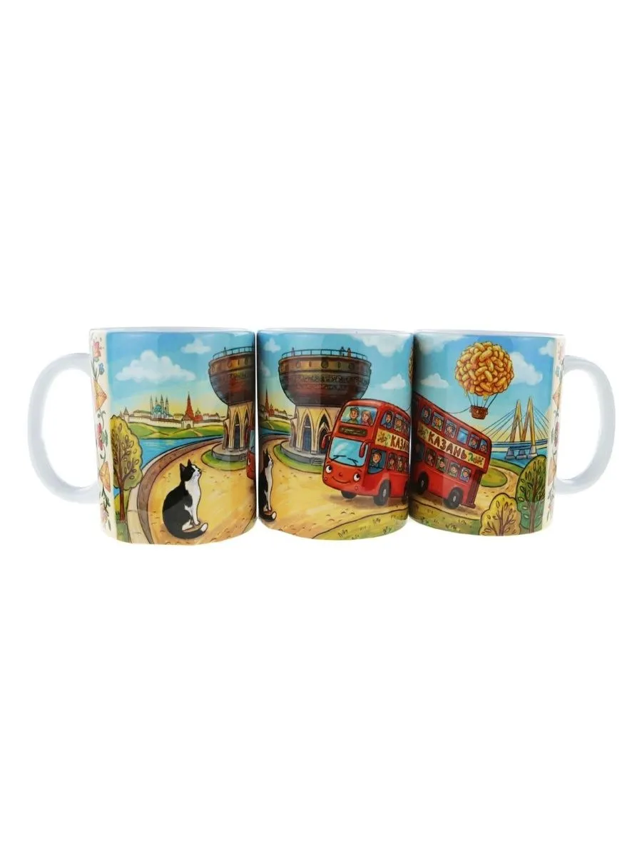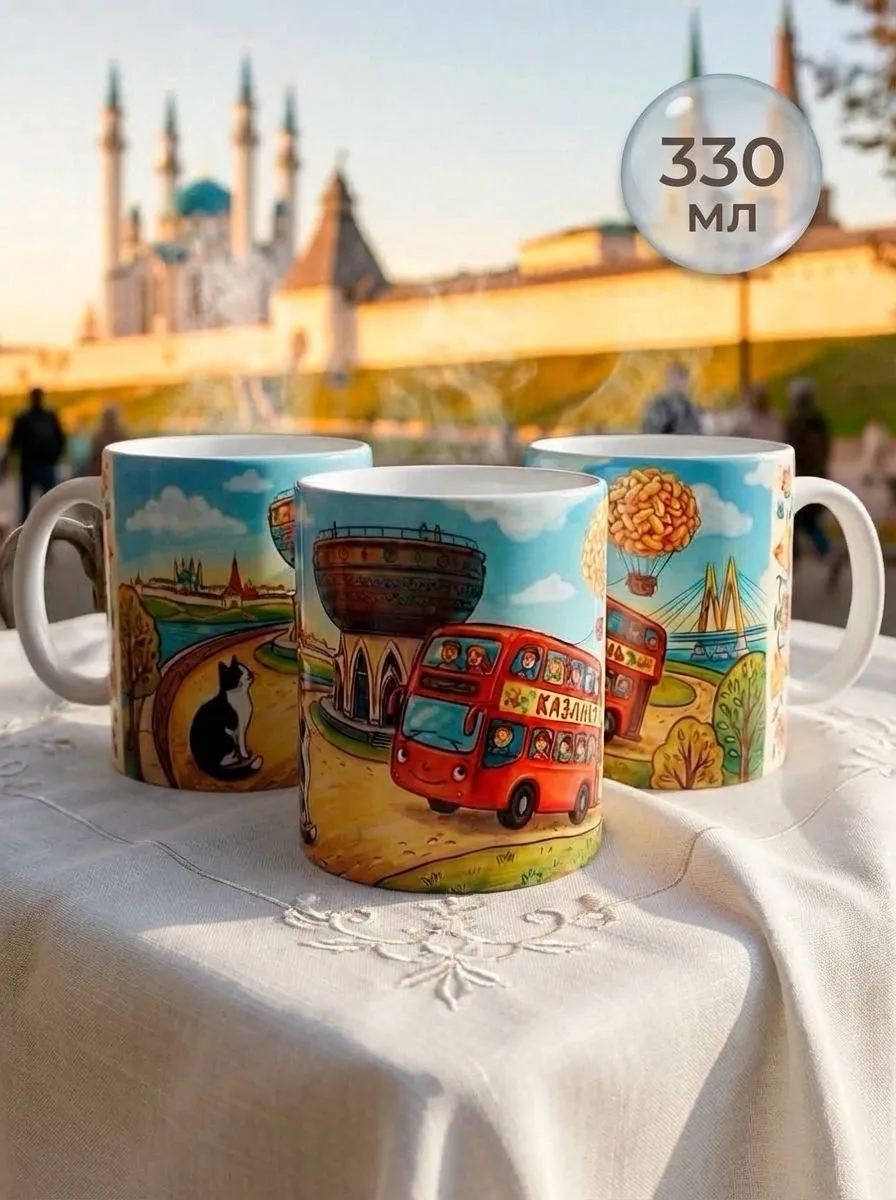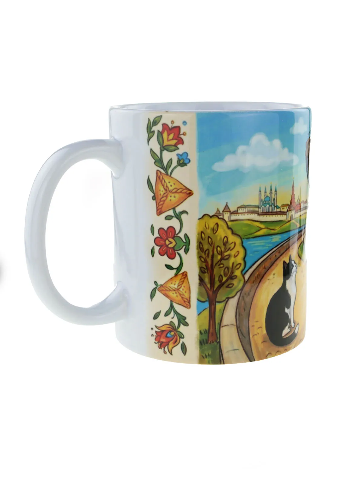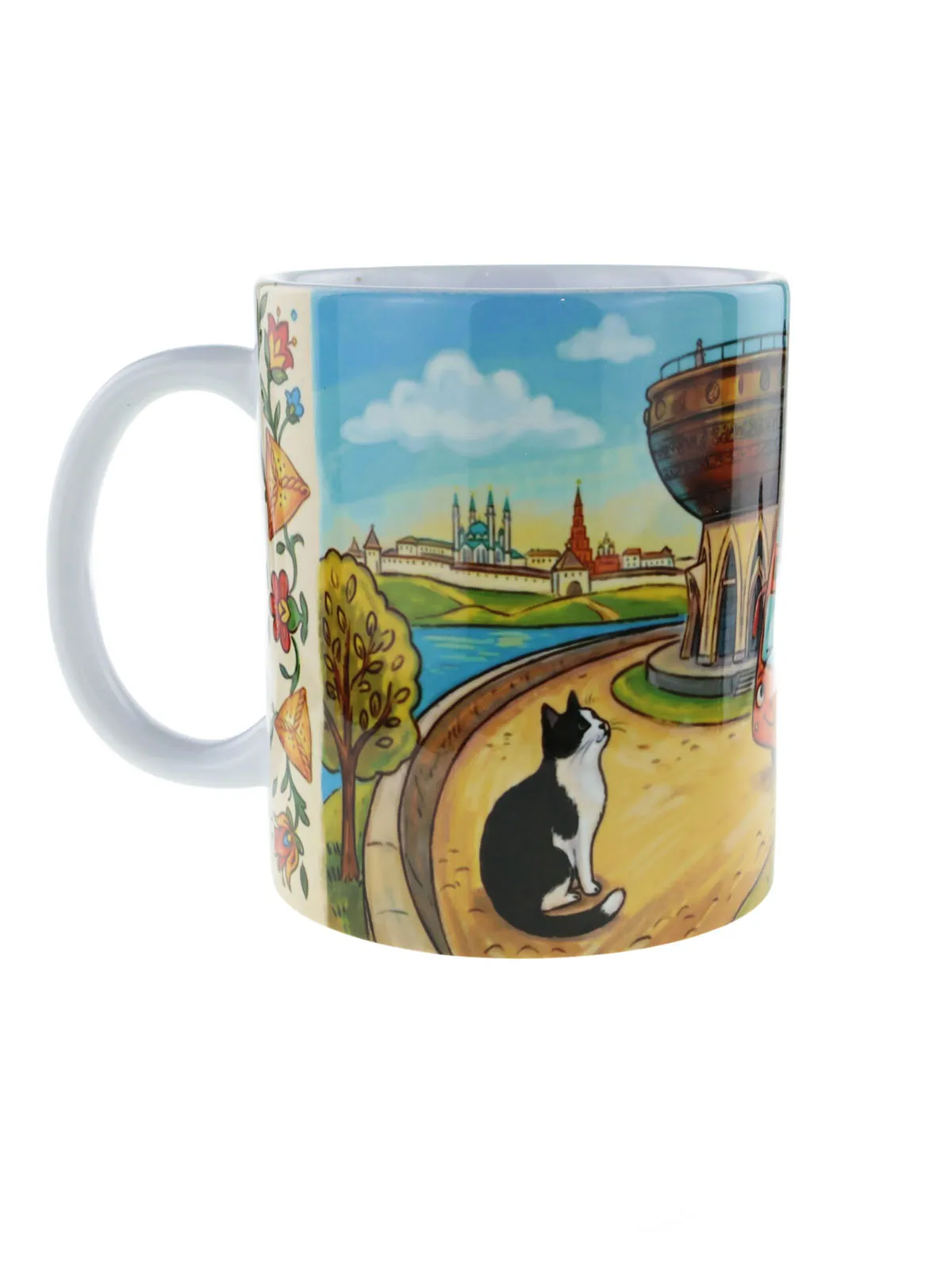 Керамическая кружка "Котовасия в Казани" с уникальным рисунком , объем 330мл.