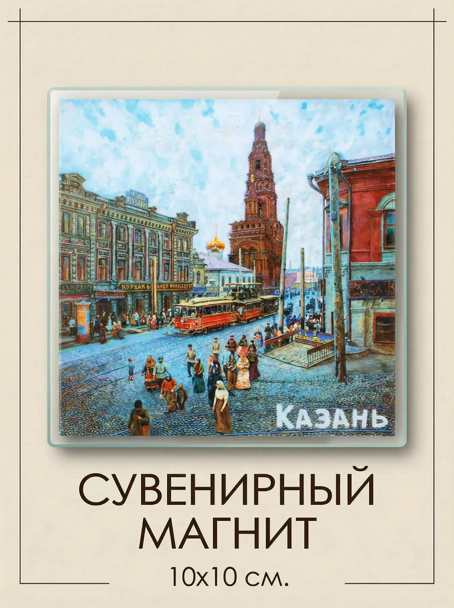 На чётком и сочном изображении вы узнаете узнаваемые фасады, уличных музыкантов, знаменитые памятники (вроде кареты Екатерины II или фонтанов) и ту самую неповторимую энергию, которая делает улицу Баумана любимым местом для прогулок у гостей и жителей города. Магнит идеального размера (10 х 10 см) станет заметным и стильным акцентом, оживляющим интерьер.