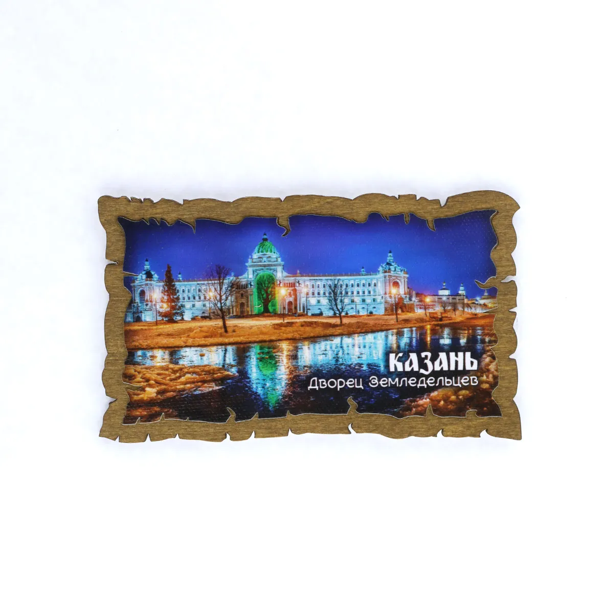 Магнит дерево холст Дворец земледельцев вечер 11х9 см