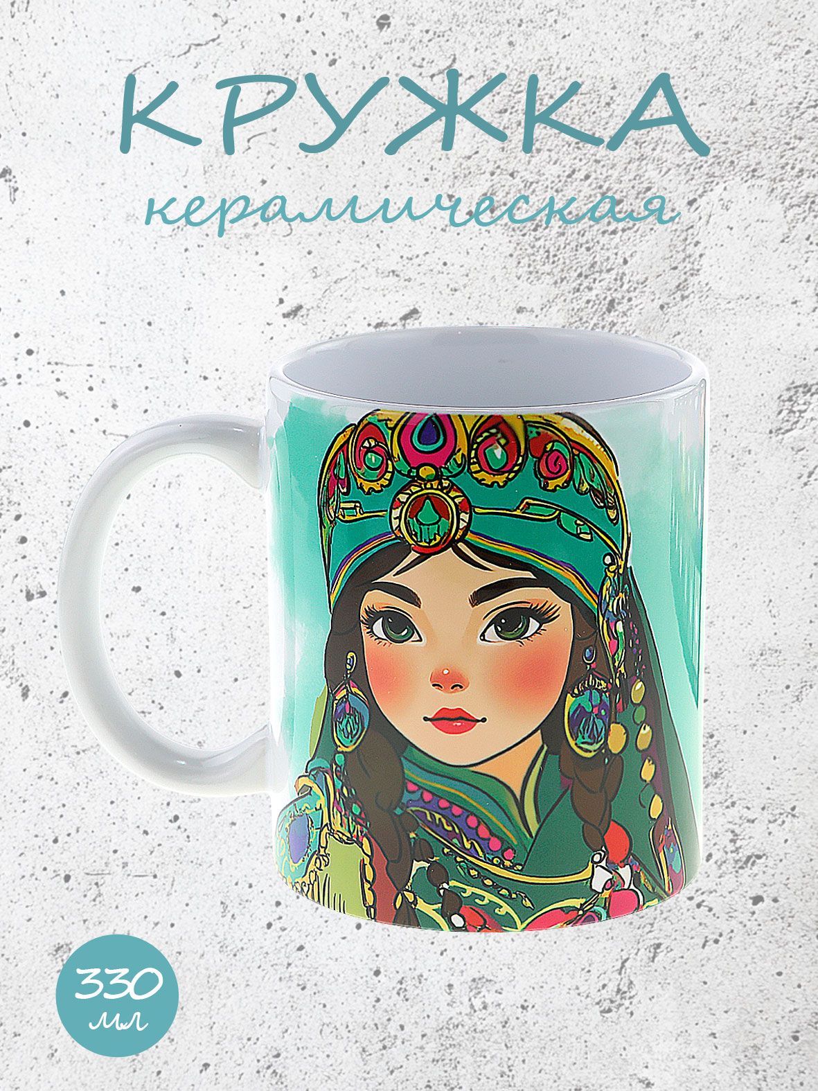 Кружка керамическая "Я татарка люблю с душой" с уникальным дизайном девушки-татарки, красивый подарок на новый год