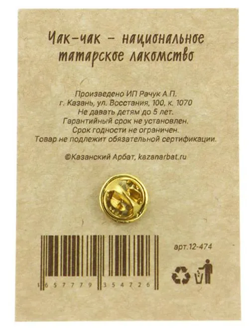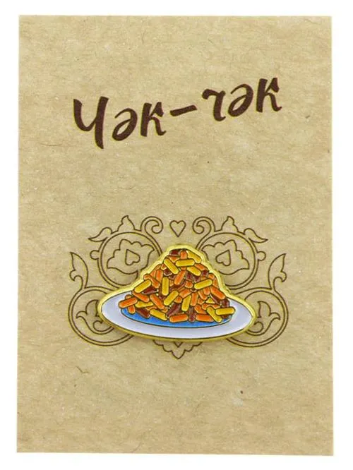 "Сувенирный значок "Чак Чак" в цвете золото — это не просто украшение, а маленький элемент татарских традиций. Изготовленный из качественного металла с благородным серебристым покрытием, этот значок привлекает внимание своей уникальной формой и детальной проработкой.