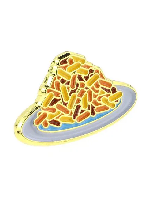 Значок идеально подходит для ношения на одежде, сумках или рюкзаках, добавляя особый акцент к любому образу. Благодаря своему серебристому цвету корпуса и яркой желтой эмали он легко сочетается с другими аксессуарами и стилями.