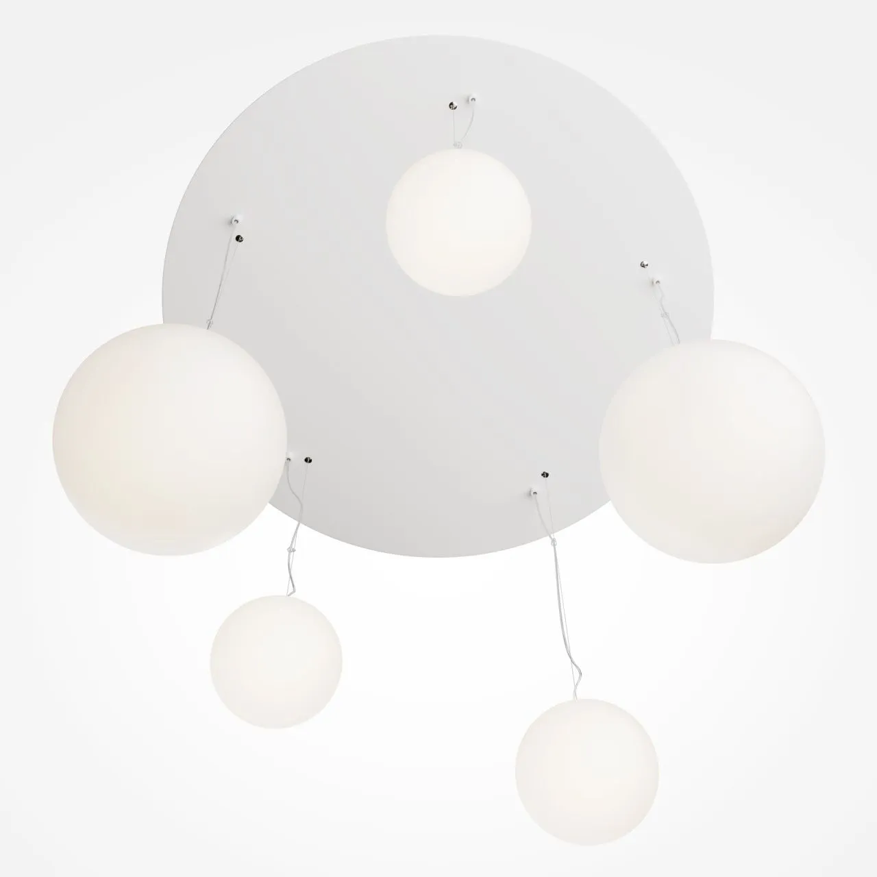 Материал арматуры – металл. Оттенки – золото, белый, черный. Округлые плафоны из матового белого стекла. Универсальные формы, минималистичный дизайн. Цоколь Е14