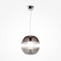 Металлическая арматура в черном цвете. Плафон из матового стекла. Внешний стеклянный декор в дымчатом оттенке. Тренд – оптическая иллюзия, эффект парения светового элемента. LED-источник света, цветовая температура 3000К.