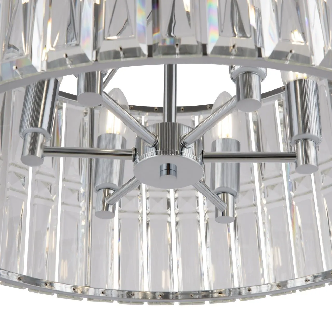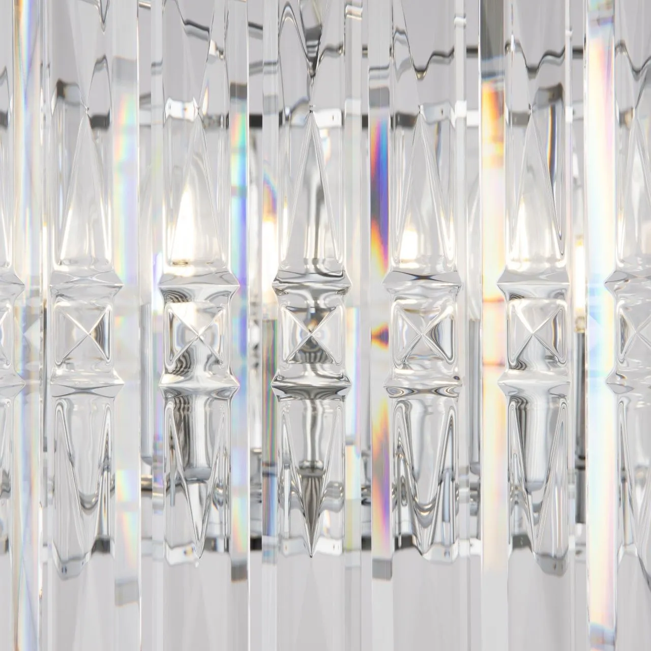Массивные грани кристаллов – акцентный элемент в оформлении серии Facet, позволяющий ей стать главным объектом внимания в современной и классической обстановке. Прозрачный хрустальный декор отличается крупной архитектурной огранкой – это подчеркивает смелый и динамичный образ модели. Металлическая арматура представлена в двух оттенках: хром и золото, что позволяет подобрать светильник, идеально гармонирующий с окружающим пространством. В серию входит 2 потолочные люстры различного диаметра (на 4 и 6 ламп), а также бра накладного монтажа. Все модели снабжены цоколем для ламп Е14.