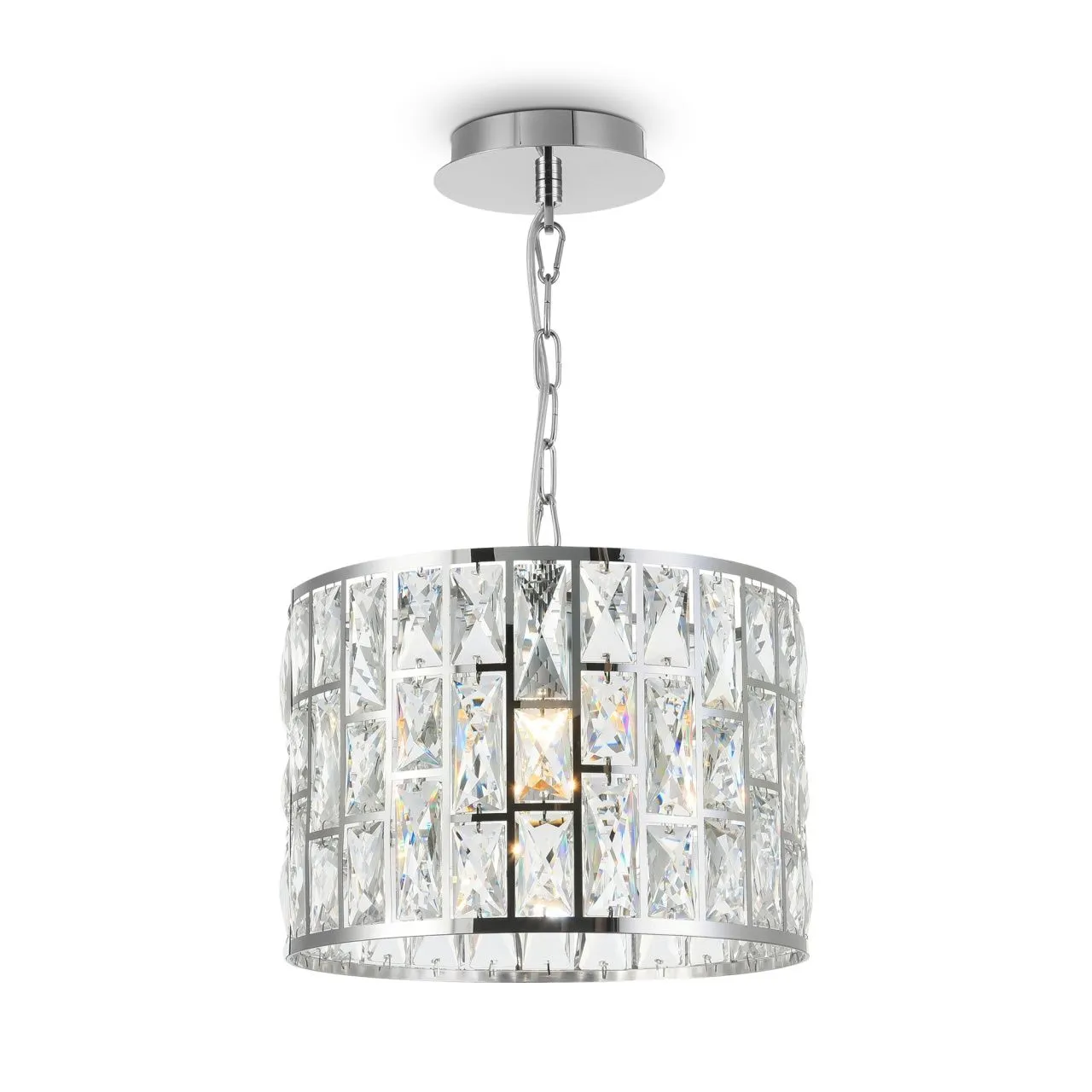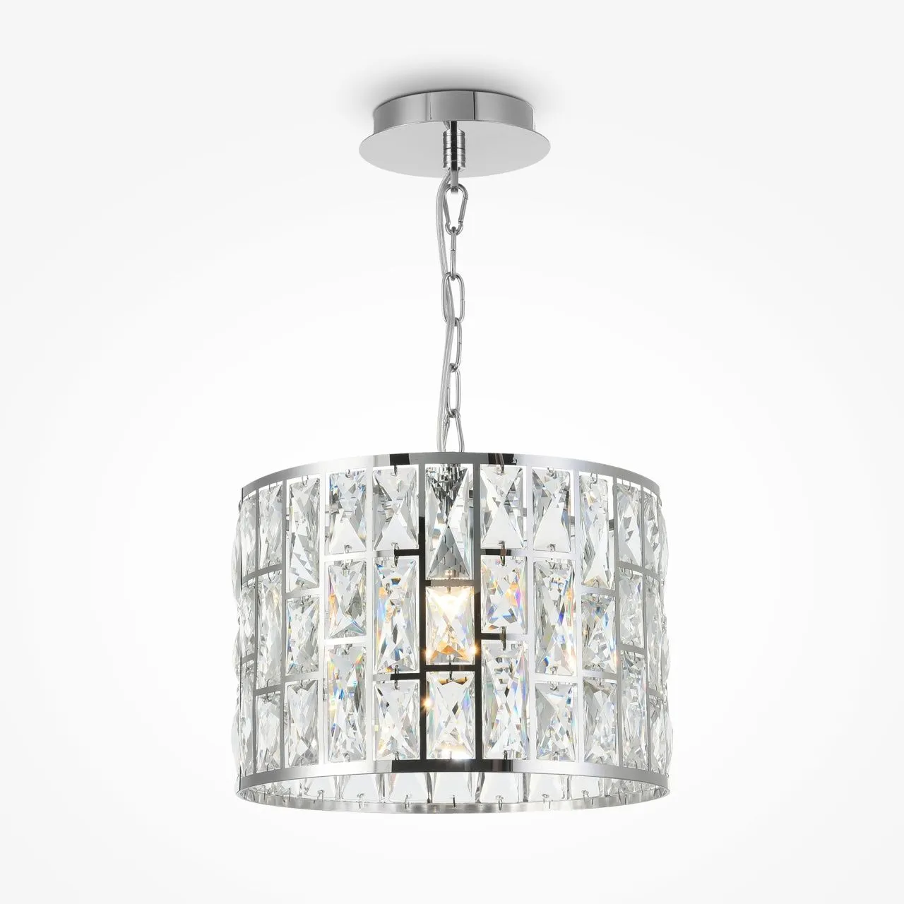 Потенциал универсальных светильников серии Gelid полностью раскрывается как в классических, так и современных интерьерах. Каркас абажура изготовлен из полированного металла с прорезанными прямоугольными окнами, в каждое из которых установлен граненый кристалл. На потолочных светильниках установлен рассеиватель из матового стекла. Высота подвесных светильников регулируется длиной цепи.