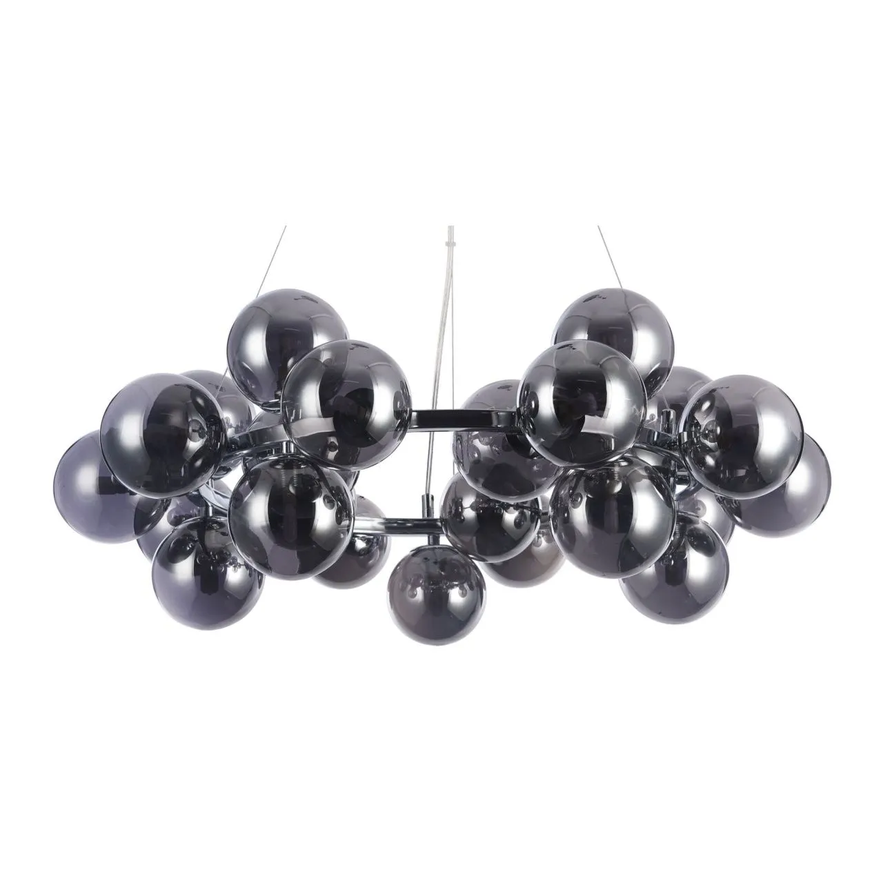 Масштабные скульптурные композиции, образованные многочисленными шарами из выдувного стекла, формируют неповторимый облик светильников серии. На полированных металлических ветвях установлены тонированные плафоны, которые мягко рассеивают и приглушают свет ламп. Модели серии представлены в трех цветах: золото, хром и латунь. Высота подвесных светильников регулируется длиной троса. Серия представлена потолочными, подвесными светильниками, и бра.