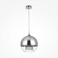 Многочисленные грани декоративных подвесок из кристаллов проецируют цветные блики на глянцевую поверхность стеклянной сферы. Арматура светильников изготовлена из металла и окрашена в два трендовых оттенка на выбор: хром и золото. Высоту светильников можно изменять, регулируя длину шнура. В серии представлены подвесы различного диаметра и люстра на 5 плафонов, что позволяет организовать как центральную, так и зональную подсветку.